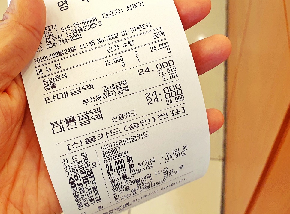 영수증 후기도 남깁니다 !