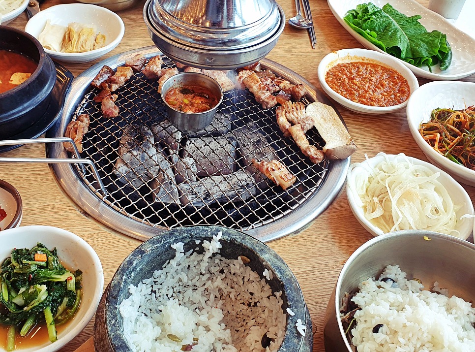 금방 지어서 나오는 돌솥밥에 고기 구워먹는게 참 괜찮아서 후기 남겨봅니다 .