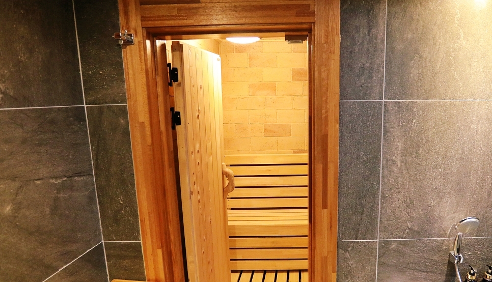 A룸에는 이렇게 건조 사우나 실이 있으며 바로옆에는 대형욕조가 있는데요 .