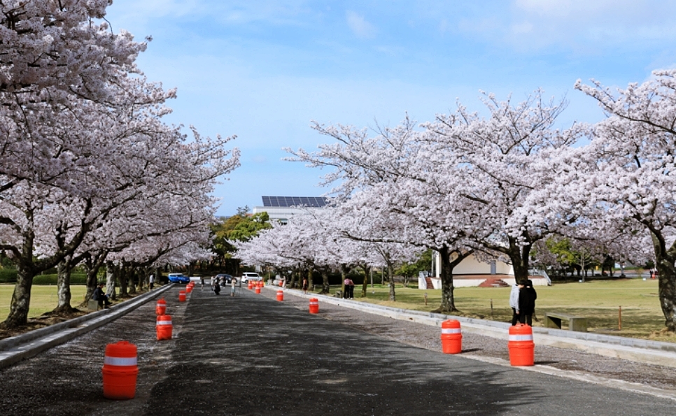 제주대학교 벚꽃길도 3월 말에 이렇게 화려하게 핀 모습 볼 수 있어요 .