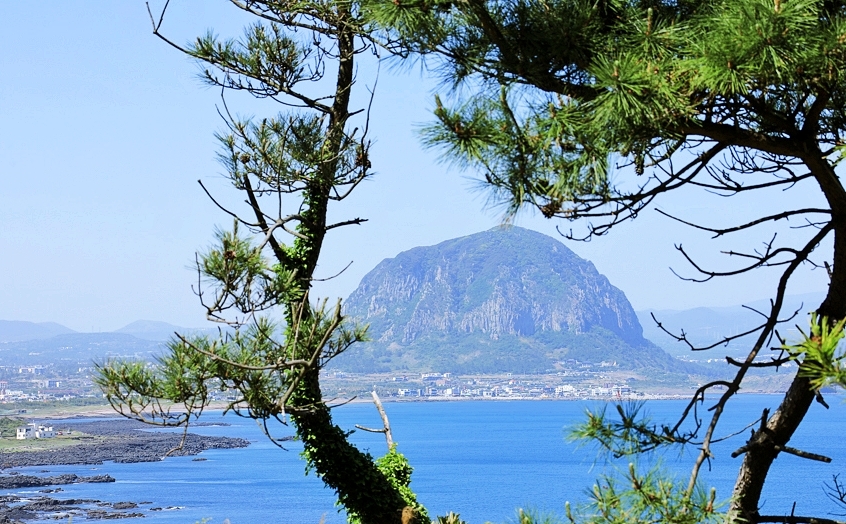 송악산은 제주도 서남쪽에 위치하고 있으며 바로 앞에 보이는 산방산은 요즘 ' 유채꽃 ' 으로 많은 사람들이 방문하고 있는 명소이기도 합니다 .