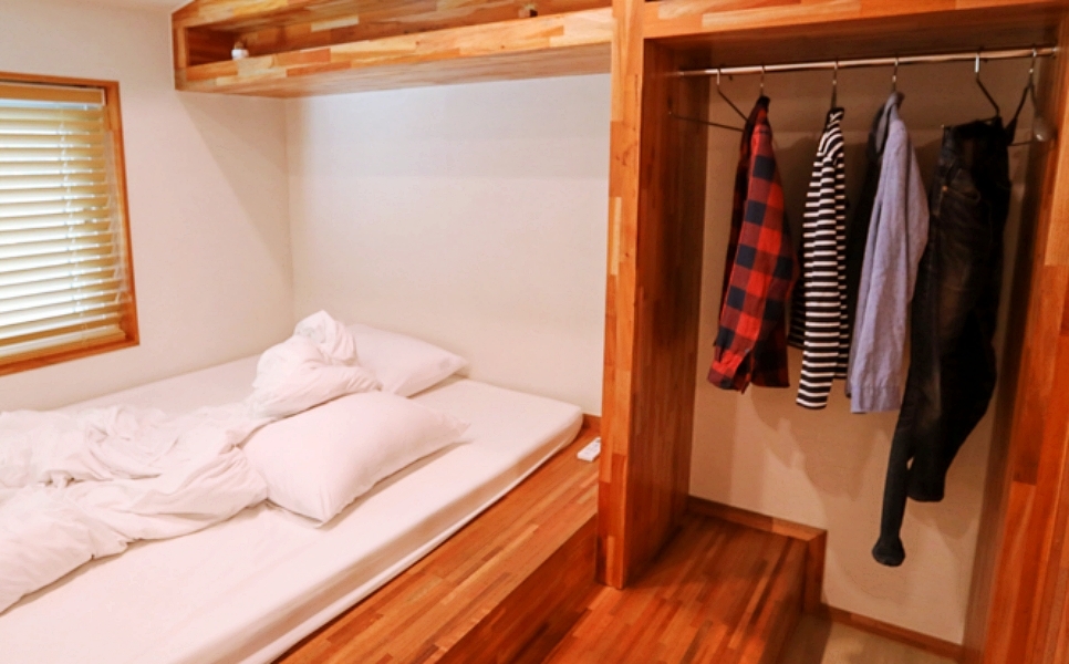 룸은 2가지 입니다 . 성인 4인 + 영아 1인 (36개월미만 )까지 가능한 A룸과 성인 2인까지 가능한 B룸이요 .