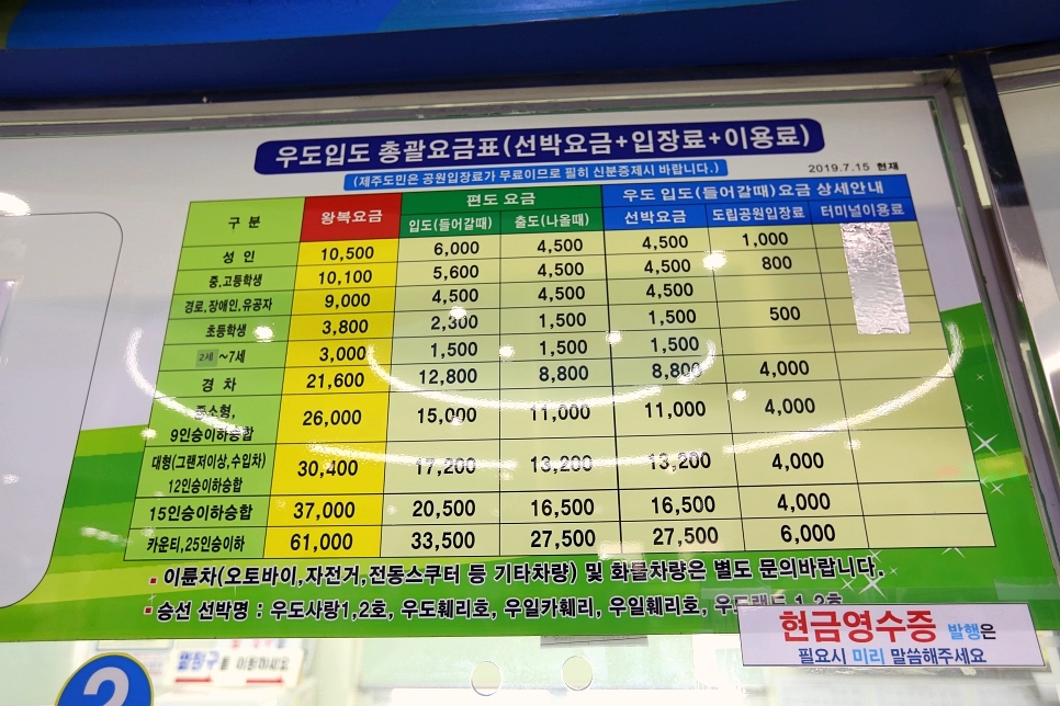 우도에 입도할때는 해양공원입장료를 포함하여 요금이 부과되는데 선박요금 , 입장료 , 이용료 합쳐서 계산하시면 됩니다 .