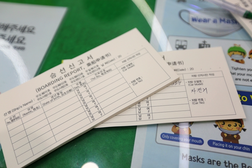 매표를 하기전에 기본적으로 승신고서를 작성하셔야 하며 이 승선신고서는 왕복으로 매표하실경우 2장이 필요합니다 .