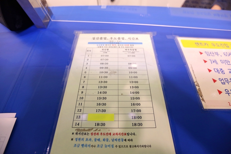 우도 배시간 입니다.