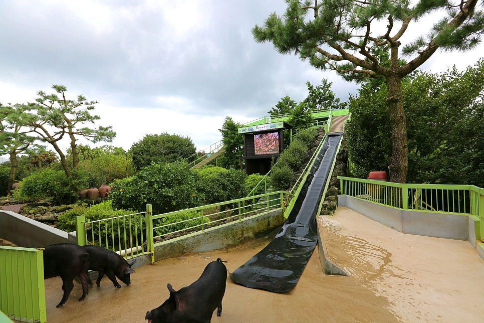 이곳은 휴애리인데요 가족여행단분들이 돼지도 볼겸 핑크뮬리도 볼겸 제주도 가옥도 볼겸