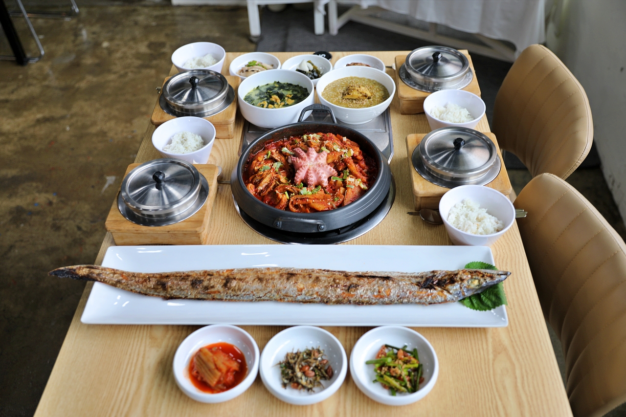 통갈치구이 / 순살갈치조림 / 성게미역국 / 가마솥밥이 나오는 세트메뉴가 가격대도 좋고 엄청 푸짐하게나와요.