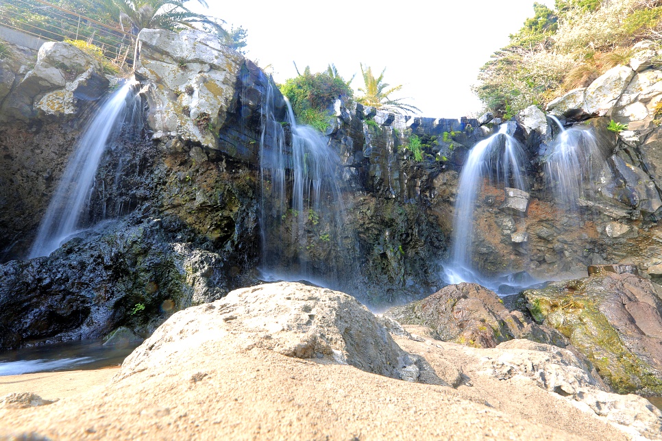 바다가 바로 앞에 보이는 곳으로 작은 폭포라서 그런가 찾는이도 많이 없어 조용합니다.