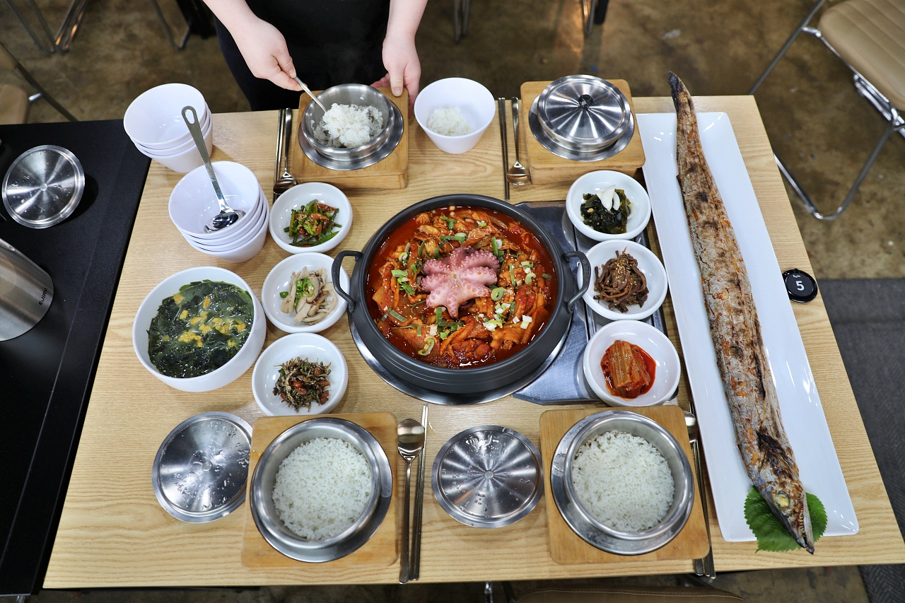 성게미역국과 문어 + 순살갈치조림에 통갈치구이가 나오고