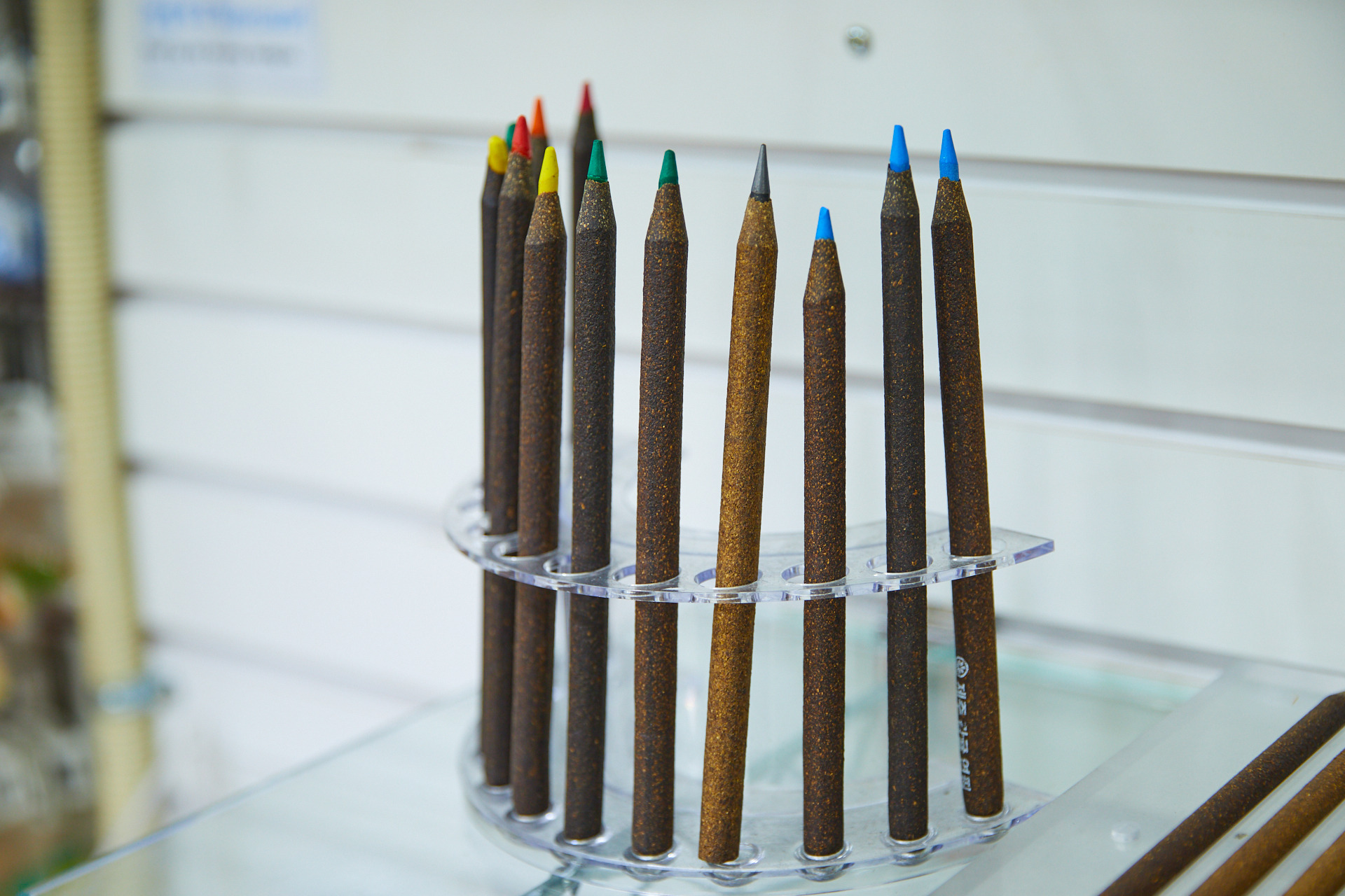 레인보우제주 서귀포 소품샵만의 제품인 커피와 감귤 연필