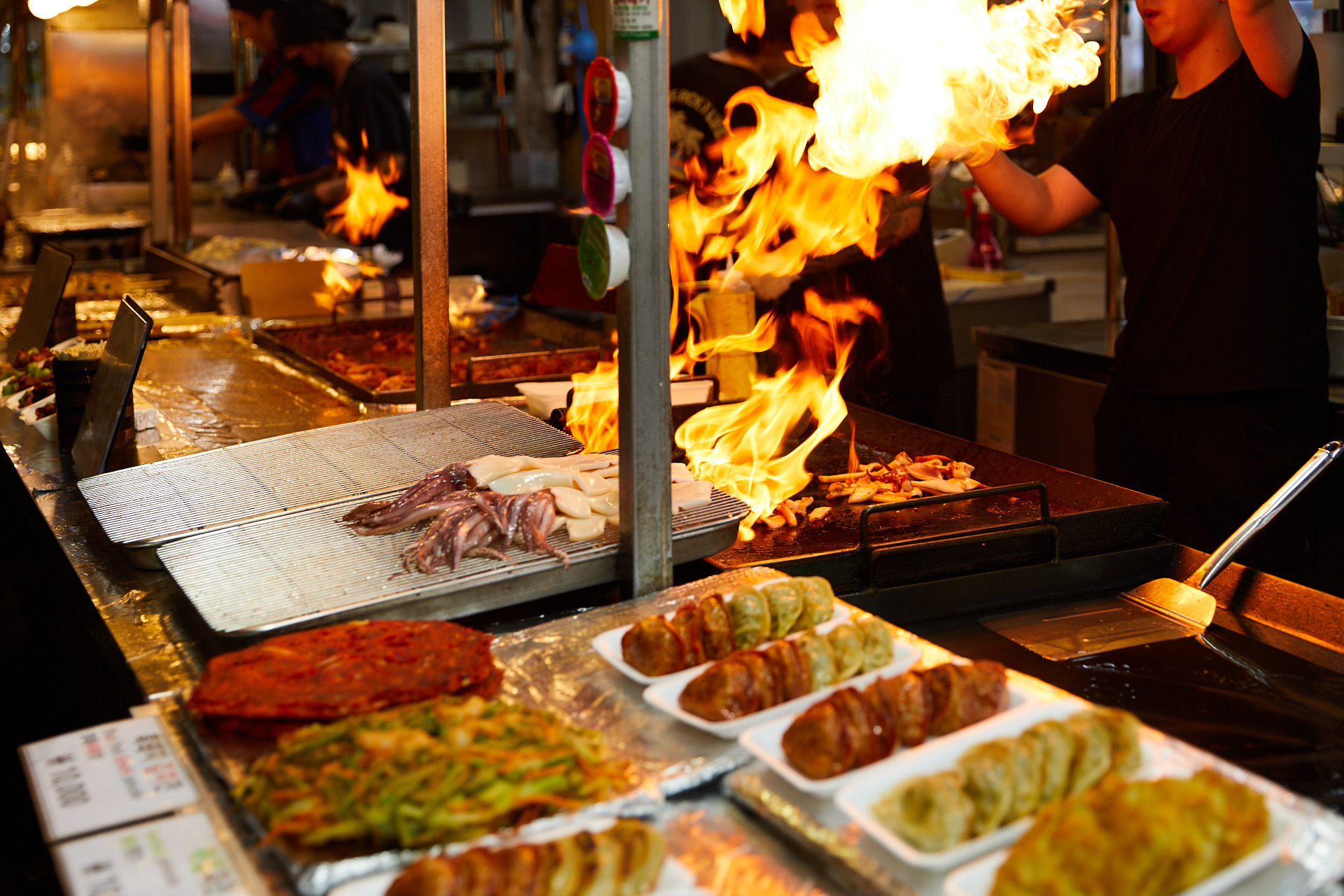 곳곳에 맛있는 음식이 유혹을 펼쳐요.