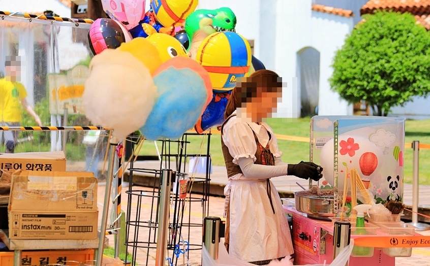 아이들이 좋아하는 솜사탕 , 핫도그 , 시원한 음료나 아이스크림 등등 판매하고 있었구요 .