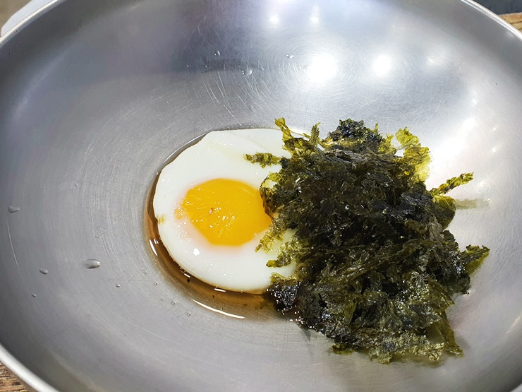 기본적으로 달걀후라이에 김가루에 참기름 이렇게 △ 나오고요.
