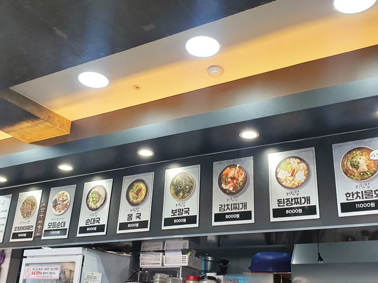 순대국 / 몸국 / 보말국 / 김치찌개 / 된장찌개 / 한치물회(이거는 시즌메뉴)에 전부 비빔밥 같이 나와요.