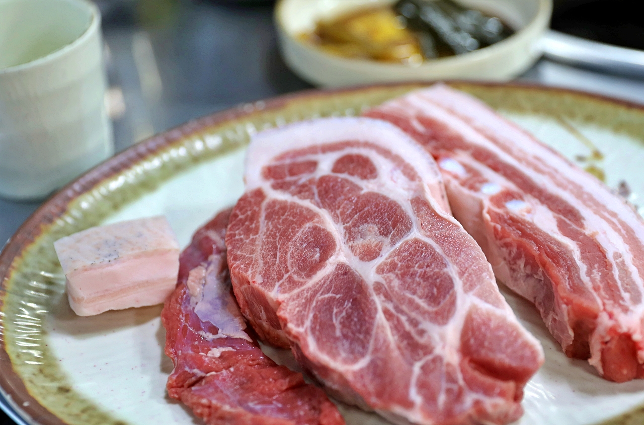 흑돼지 생구이 전문점으로 오겹살 , 목살, 가브리살, 갈매기살, 항정살 총 다섯가지 부위 있습니다.