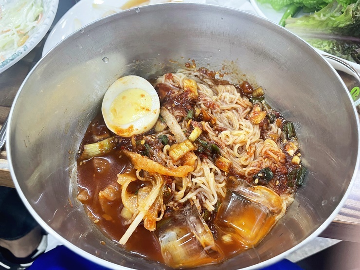 먹고 온 음식은 구이모듬 대짜랑 육회 소짜 그리고 후식 비빔냉면이예요.