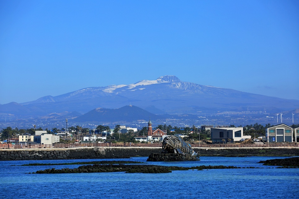 이번에 다녀왔을때 사진을 못 찍어둬서 저번에 방문했을때 사진이다보니 한라산에 눈이 한가득이네요 ㅎㅎ