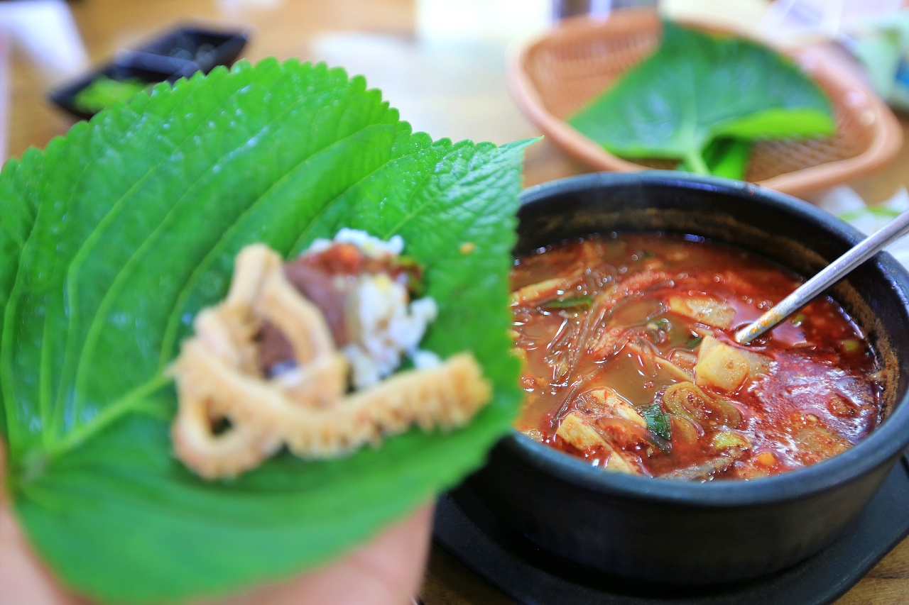 그리고 이곳은 깻잎이 같이 나오는것이 특징인데 깻잎에 내장 올리고 젓갈 올려서