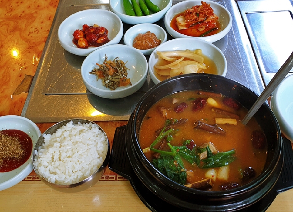 점심시간에 가면 이렇게 얼큰하게 한방오리탕 먹기 좋구요.