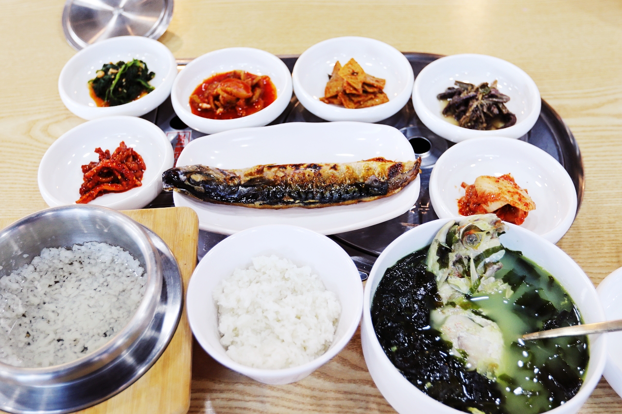 이렇게 혼밥하러 갔을때 성게미역국 △ 먹었었는데 고등어구이 반마리 보이시죠^^