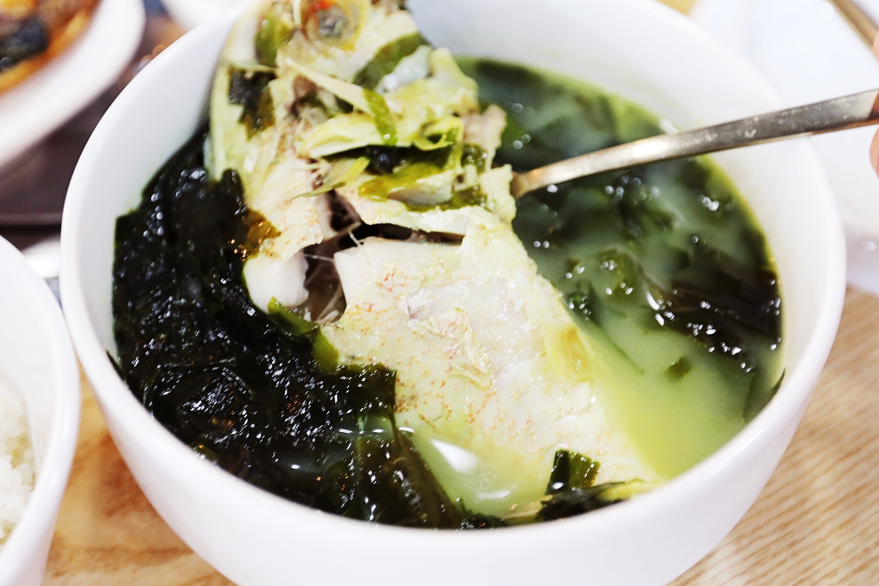옥돔미역국을 선택하면 옥돔 한마리가 통채로 나오기도 합니다 .