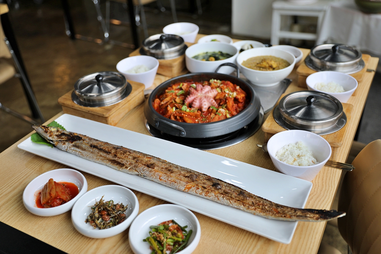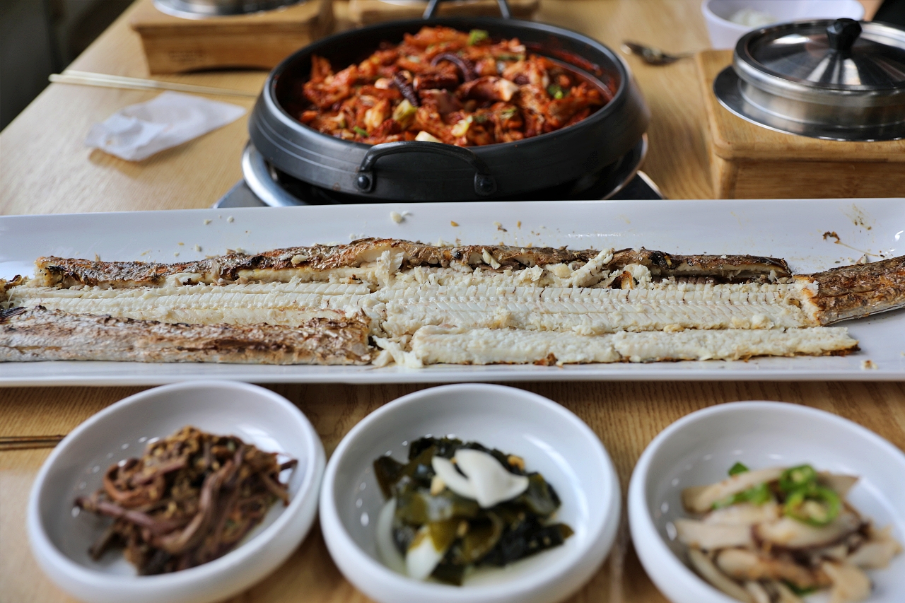 제주에서 꼭 먹어봐야한다고 알려진 통갈치구이와 순살갈치조림 그리고 성게미역국이 나오는
