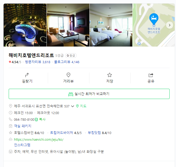 5성급 호텔이고 표선해수욕장 바로 앞에 있으며 체크인은 오후3시 체크아웃은 낮12시로