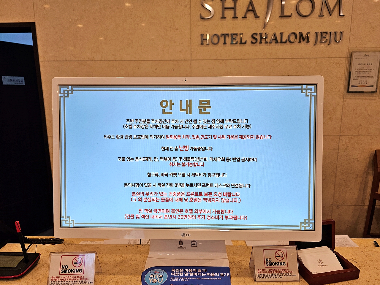 그리고 전 객실 금연입니다. 흡연시 20만원의 추가 청소비 부과된다고 해요.