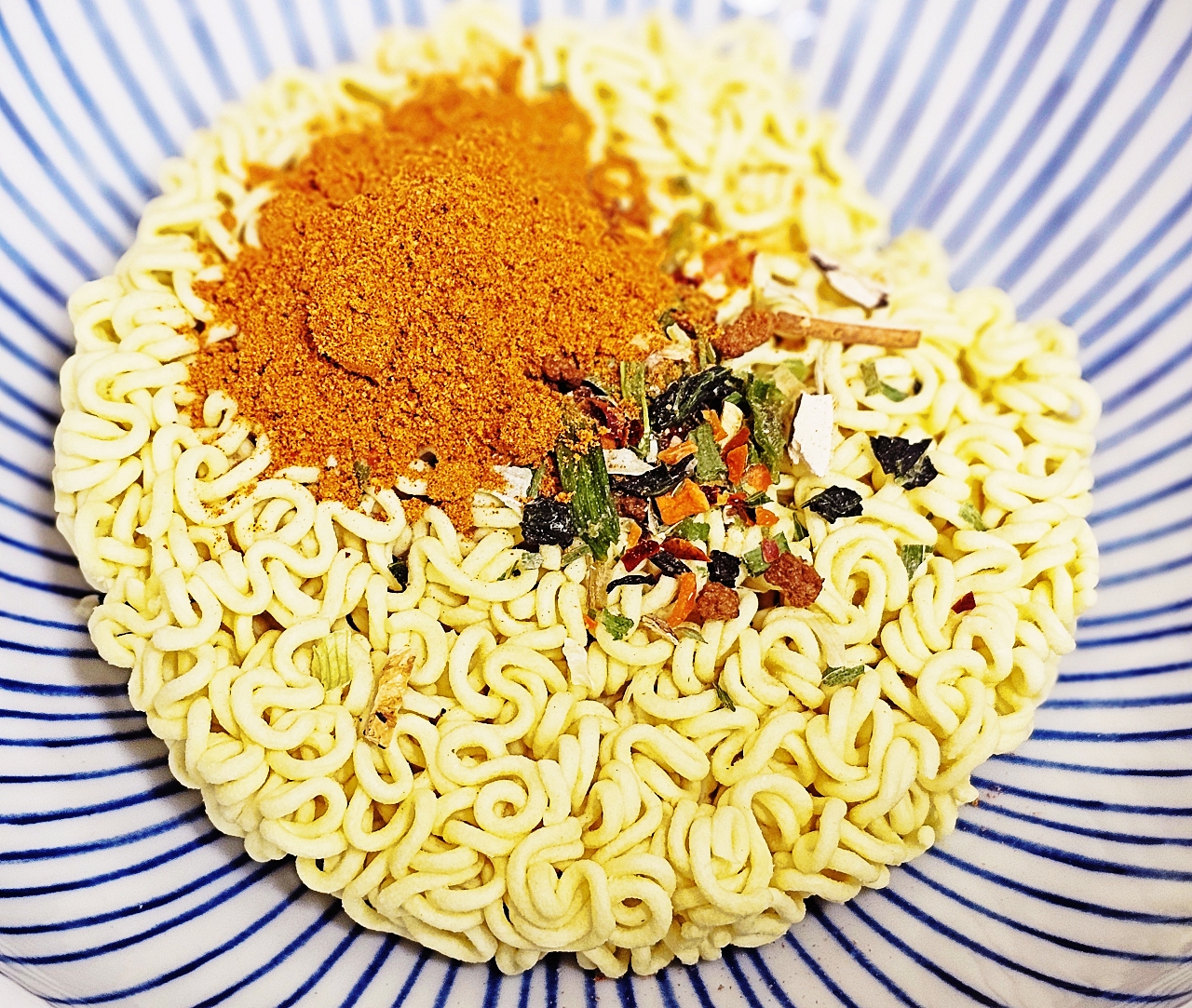 라면 위에다가 정성스럽게 분말이랑 건더기를 넣어줬는데