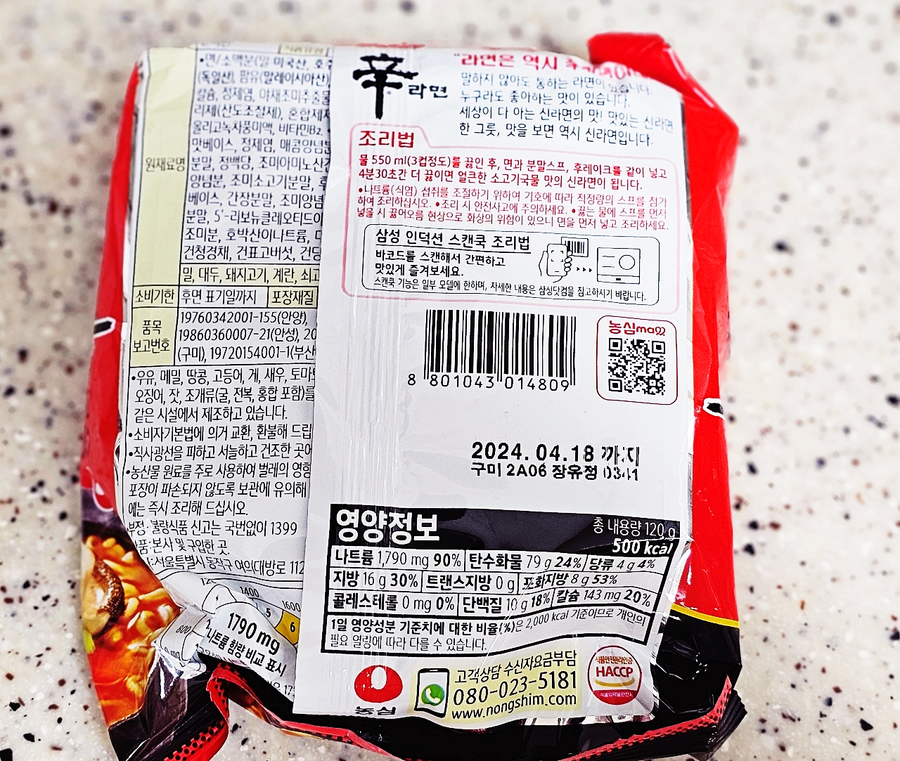일단 저는 ' 매운 신라면 ' 을 이용했지만 걍 아무 봉지라면이나 관계없죠.