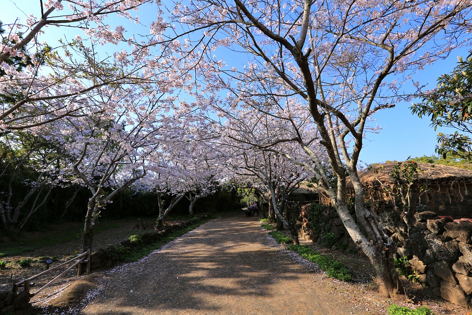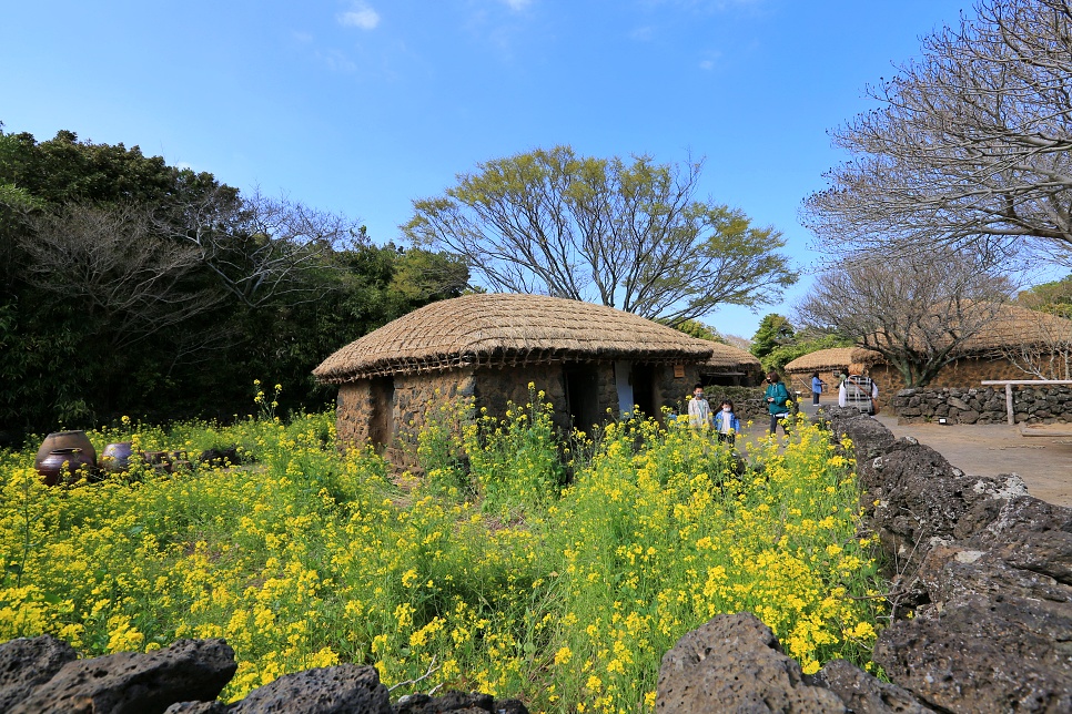 제주민속촌도 초가 + 벚꽃 + 유채꽃 + 동백 같이 보기 좋죠.