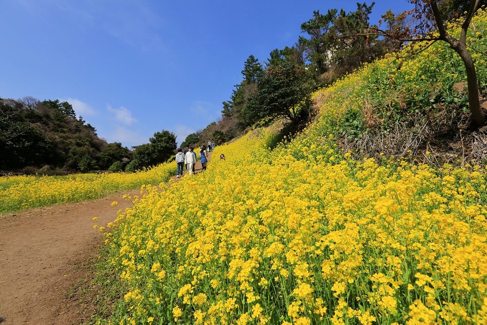 유채꽃이 비탈진경사면을 따라 쭈욱 피는곳이라 입체적인 사진을 남기러 다녀오기 좋아요.