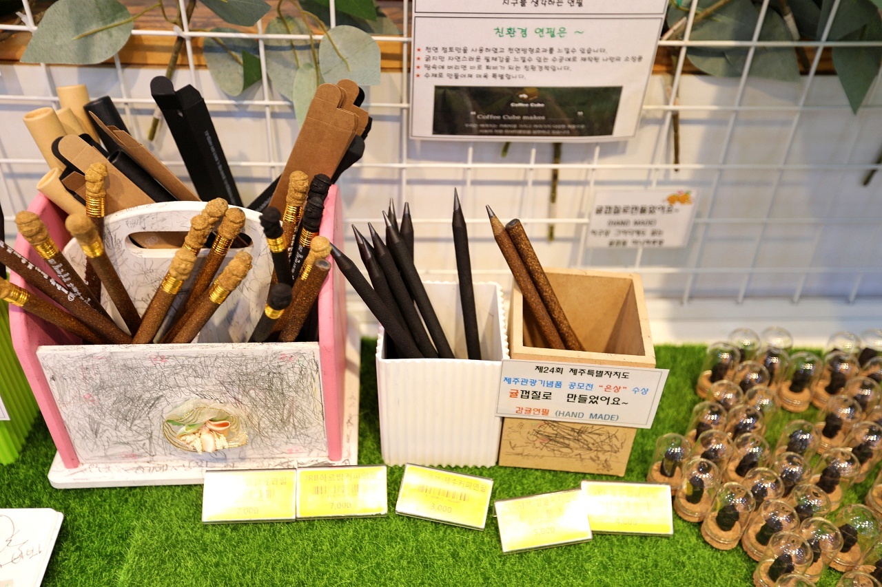 제주 감귤 천연 연필 & 점토 , 커피박 천연 연필 & 점토 판매중입니다 .