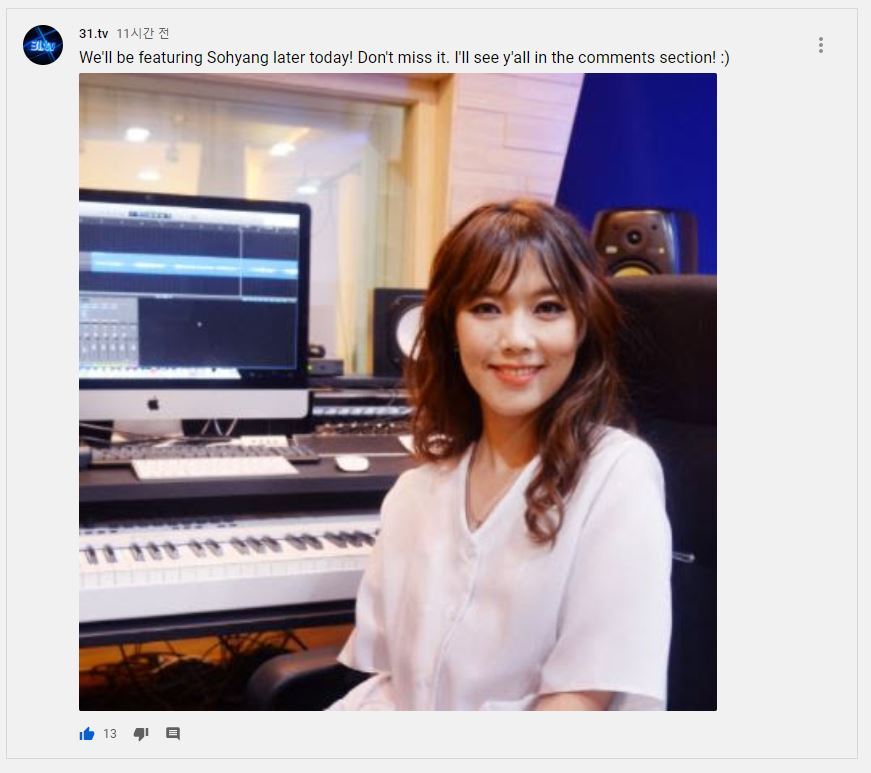 이미 올린 영상의 링크를 건 것도 아니고, 영상이 뜨기도 전에 특정 가수의 사진을 이렇게 본인의 유튜브 커뮤니티란에 올려서 리액션 업로드 예고를 한 것은 그가 확실히 소향님을 인상깊게 봤다는 것이 아닐까 생각됩니다.