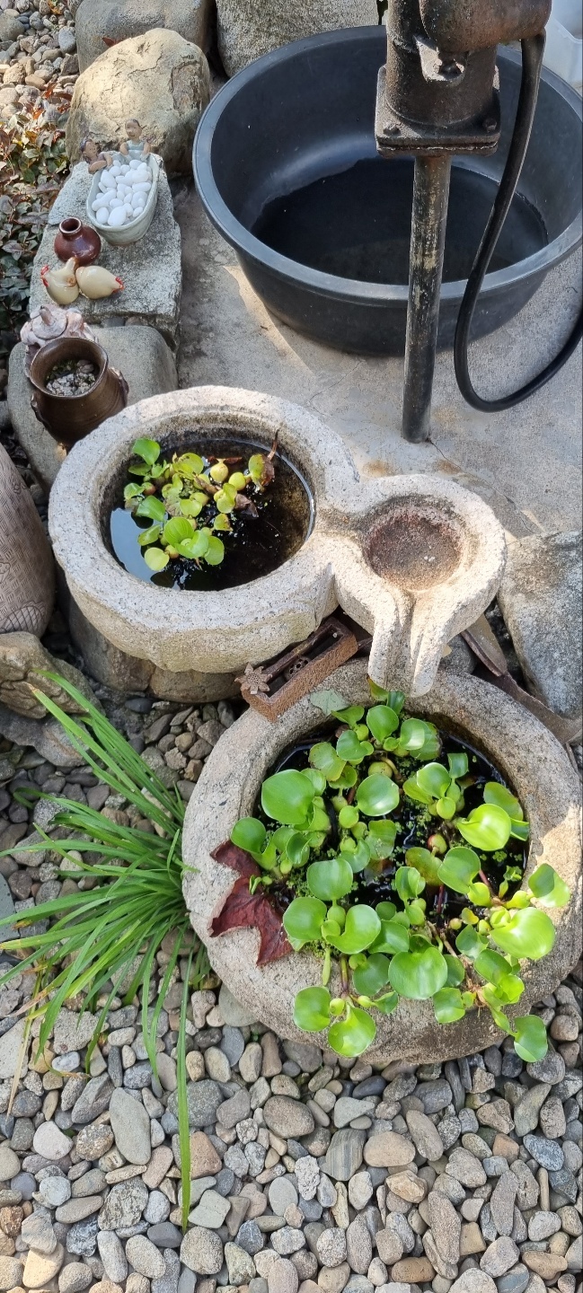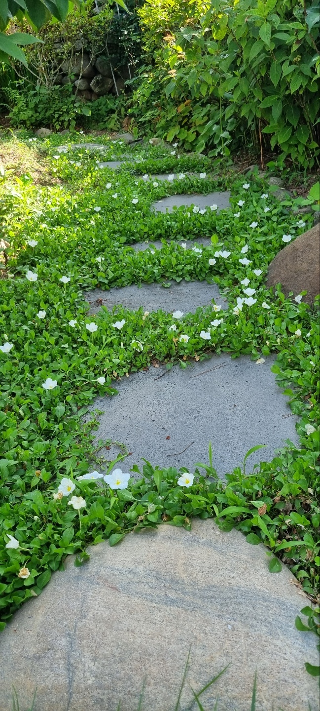 마당 한 쪽 산책 길에 들여 온 냥이와 순이는 함께 노니 이것이 평화로세