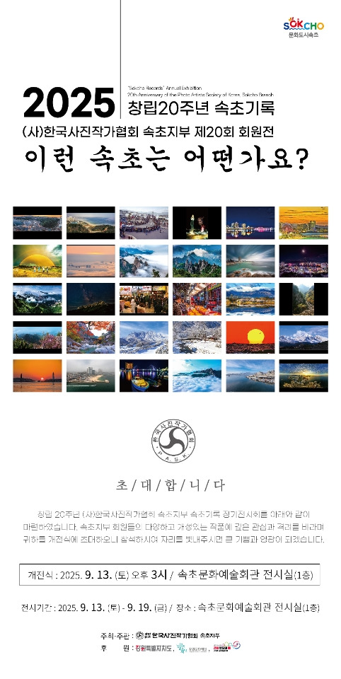 "2025" 창립 20주년 속초지부 회원전 작성자동해바다/장창근1|작성시간25.09.02|조회수40 목록 댓글 1 글자크기 작게가 글자크기 크게가 다음검색 현재 게시글 추가 기능 열기 북마크 공유하기 신고 센터로 신고 댓글 댓글 1 댓글쓰기 답글쓰기 댓글 리스트 작성자설봉 (김건수) | 작성시간 25.10.04 수고하셨습니다 댓글 전체보기
