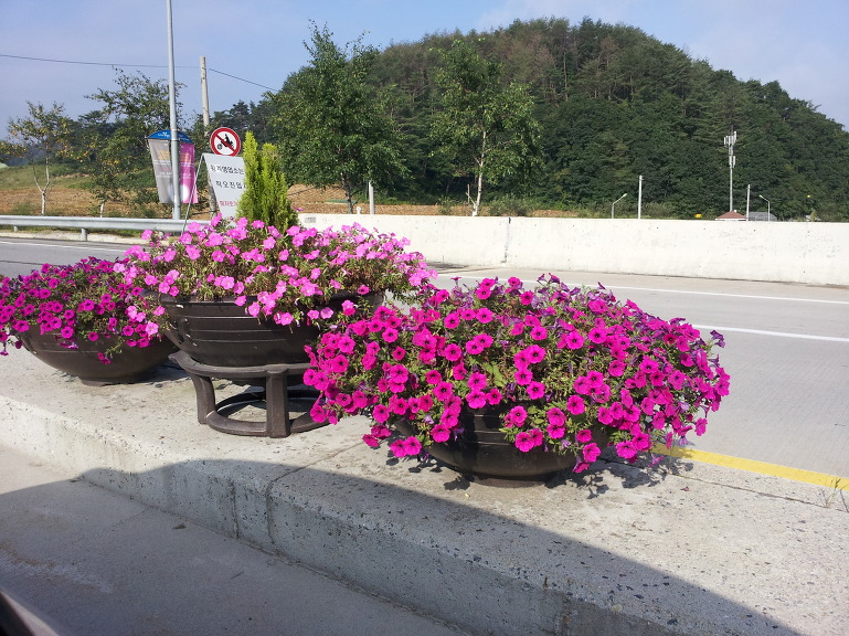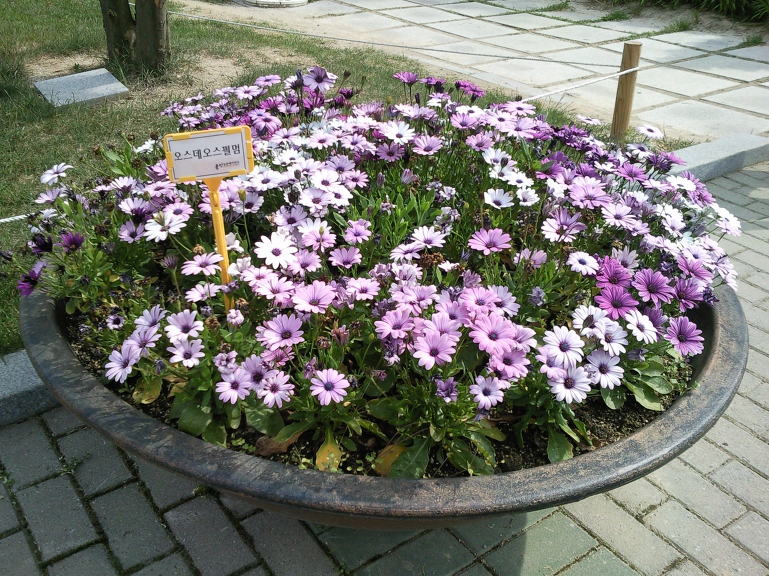 - 사피니아 > 페추니아 : 꽃색이 다양/ 화려. 꽃이 아래로 처지는 것이 화분에 담으면 좋다. 여름철 장마에 꽃이 녹아내림 (물이 잘빠지는 화분에 담긴것은 괜찮음, 즉 물기가 고이는 곳은 꽃이 녹아내림)