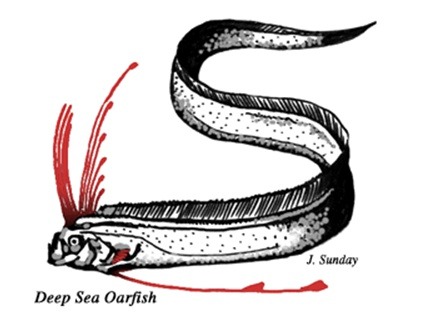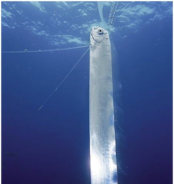 세계적으로 드물게 발견되는 산갈치는 주로 해변가에 사체나 실신상태로 나타나는데 갑작스런 상승조류에 기절해서라는 설이 유력하다. 일본에서는 대지진 전에 나타나서 지진을 부르는 물고기로 알려져 있으며, 최근 우리나라에서도 발견되어 지진도래설을 불러일으킨 바 있다. 아무튼 심해어류가 해변에 나타나는 것은 정상적인 상황이 아닌 것만은 분명하다. 지진 외에도 온난화 등로 인해 심해저의 메탄가스가 녹아 심해어류나 돌고래 등의 죽음을 불러일으킨다는 설과 산갈치의 사체 발견 사이에도 어느 정도의 관련성이 있어 보인다.