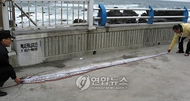 이는 해저 깊은 곳에서 지내는 심해어류 산갈치가 지반이 흔들리는 등 이상 징후가 느껴지면 해수면으로 올라온다는 속설과도 무관치 않을 것인데, 실제로 지난 1963년 일본 니지마에서는 대형 산갈치가 잡힌 이틀 뒤 지진이 발생하면서 이 속설이 설득력을 얻고 있다.