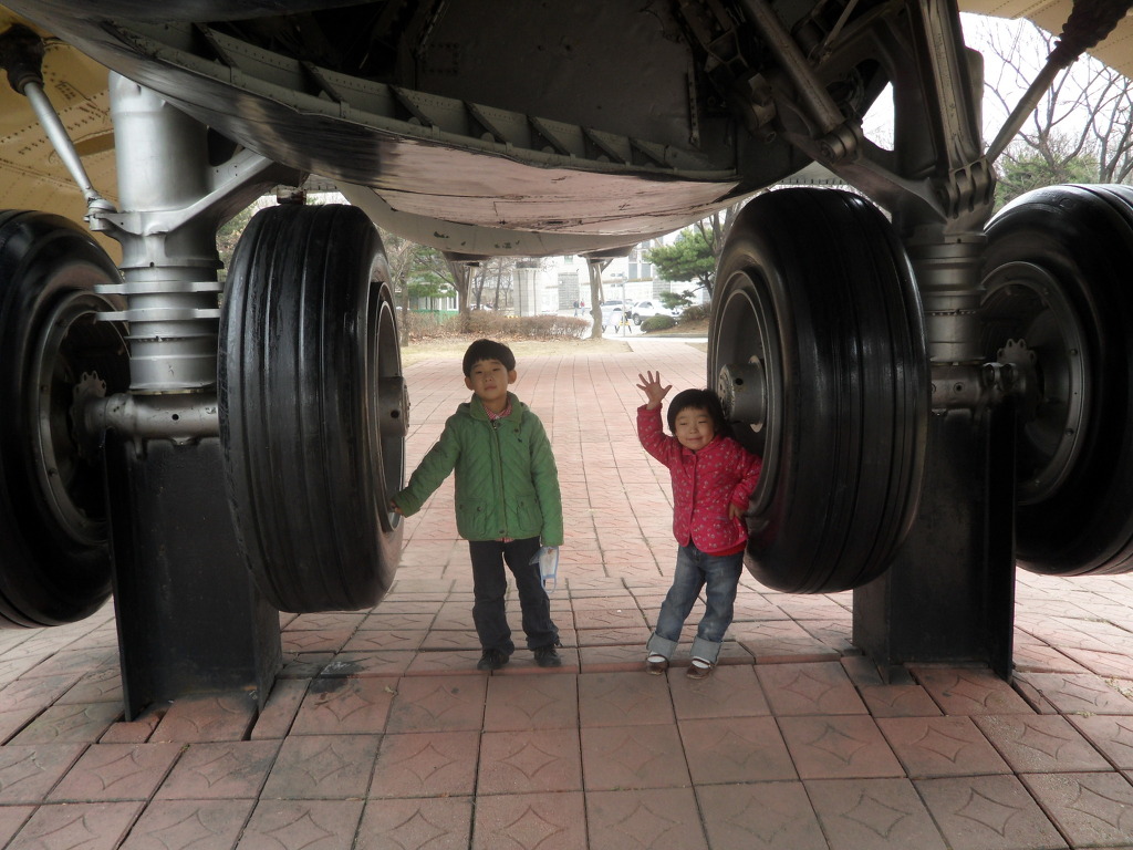 비행기 바퀴가 애들 키보다도 크네요..