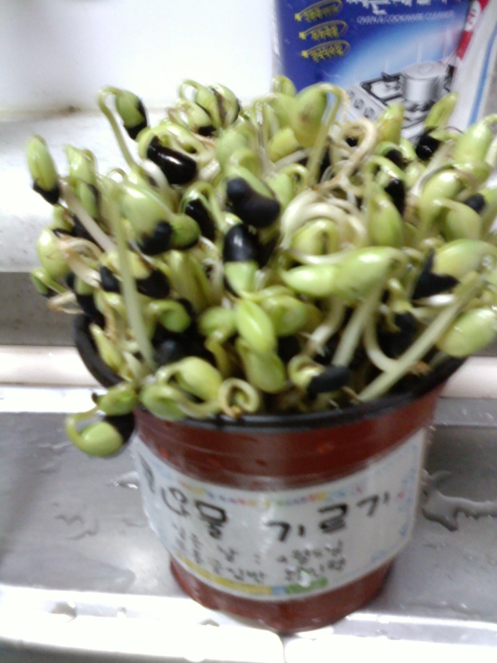 열심히 물을 줬어야하는데 이 무지한 엄마가 하루 한두번만 조금씩 물을 주었더니 안자라서 외할머니에게 조언을 구했더랬죠.. 카페 보니깐 콩나물이 많이 커서 다들 맛있게 먹던데 왜 우리 똥강아지는 안크는지 모르겠다고..