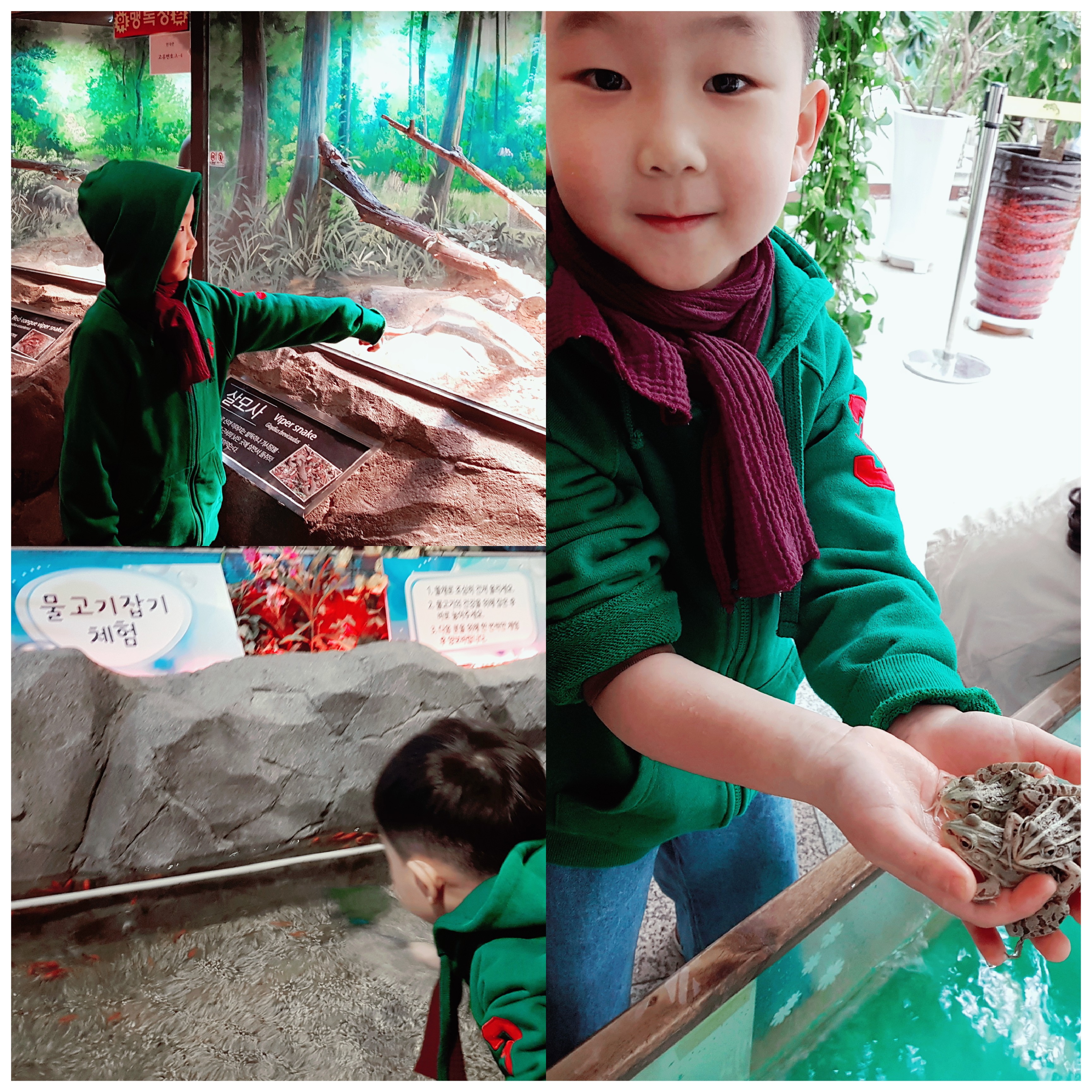 물고기잡기..개구리만지기..