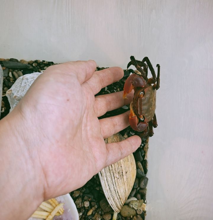 스마일크랩은 겁이많은 게라 잘 물지 않아요~~~ 다른 게 들과 달리 물어도 꼬집하고 바로놓는 정도라 많이 아푸지 않답니다~~
