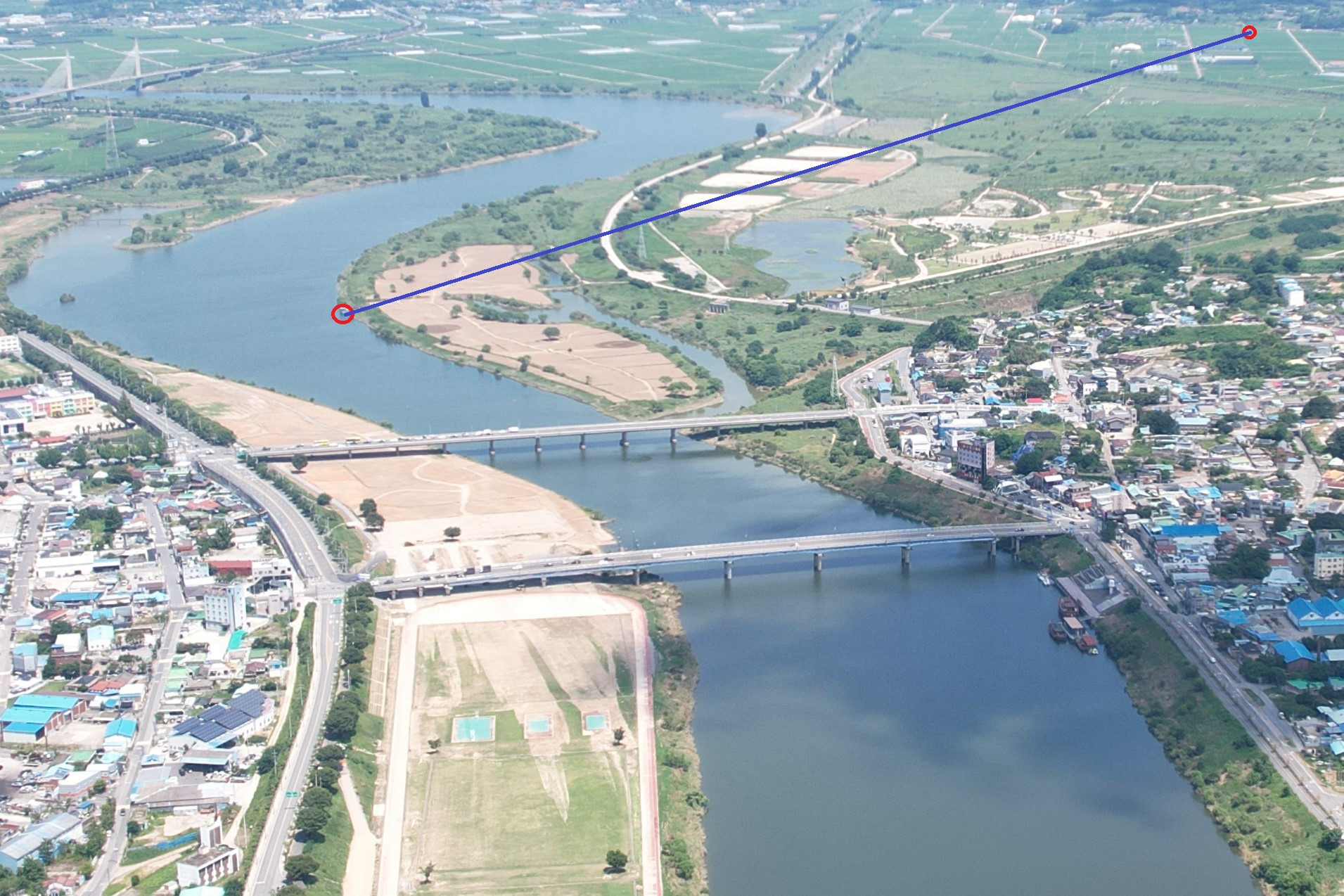 동단점과 서단점 사이에는 영산강 제방이 가로막고 있어 두 점간 시통이 불가능하였다. 따라서, 경위의나 광파측거기 등 기존 장비로는 기선장을 측정할 수 없고, GPS관측에 의존하는 수밖에 없었다.