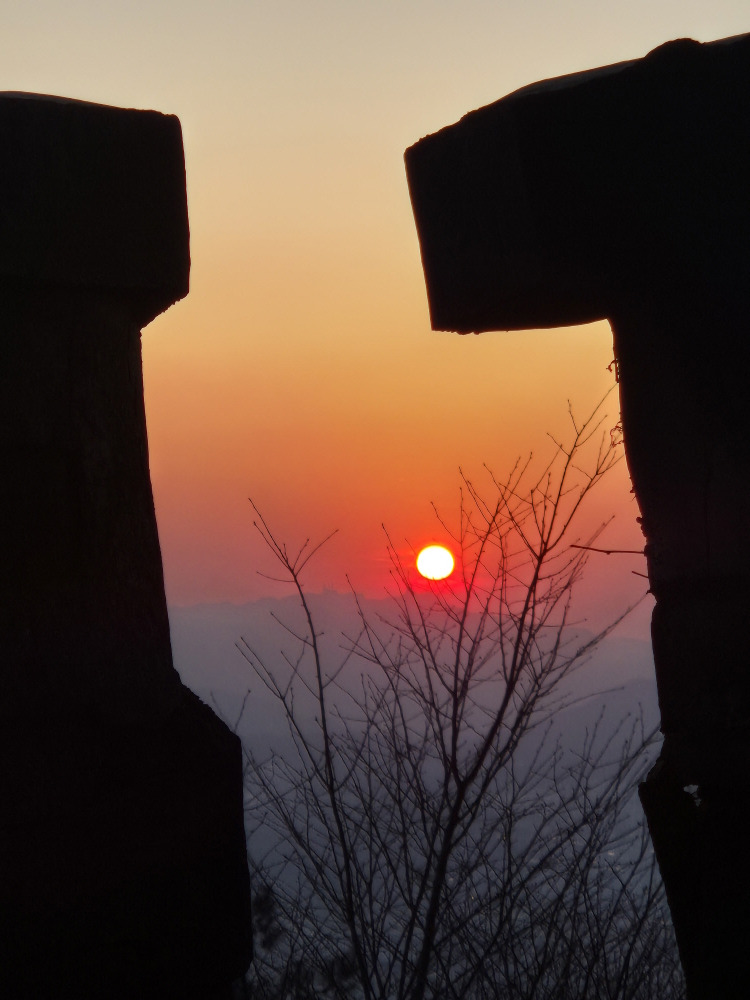 연주봉 지나며 성 외곽은 얼음길로, 아이젠에 스틱도 없어 진행 불가