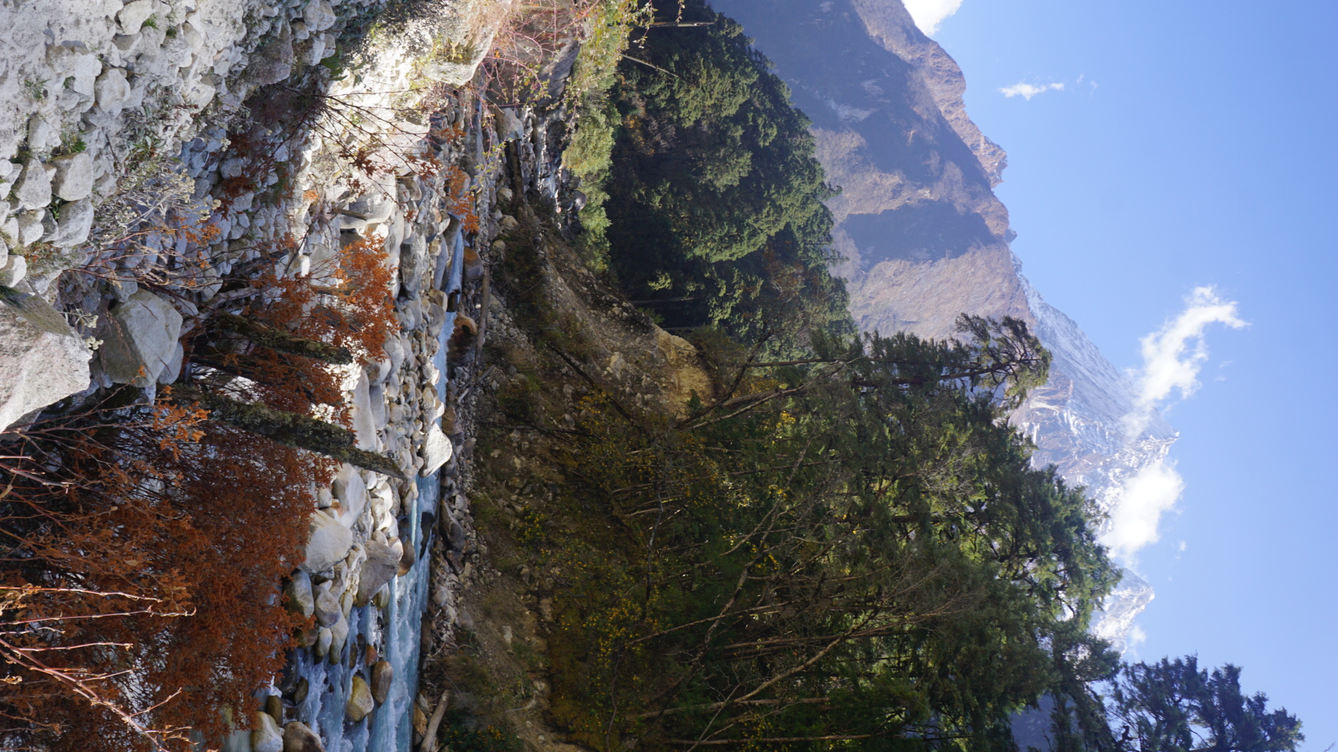 건물 오른쪽으로 계곡콜라(강)가 흘러 약간 추운감이 있었으나 겨울침낭에 들어가 추운줄 모르고 지난밤 비교적 잘잔 것 같다. 우리가 잔 곳은 오른쪽 건물 1층.