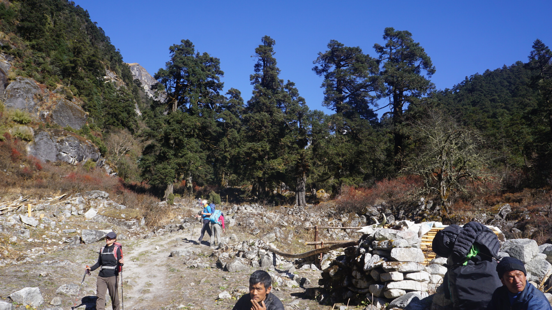 옛날 2G 폰을 사용하기에 고생을 많이 하고 안타까운 마음에 준비해 간 갤럭시 A 핸드폰을 주니 너무도 좋아하는 마음을 보니 그나마 마음이 가볍다. 원래는 가이드겸 포터를 계약해 짐을 지기로 했는데 이곳의 률엔 가이드는 짐을 안 진단다. 그래도 산행 이튿날부터 삼도까지 그리고 다람살라 일부까지 함께 짐을 지고 왔다.