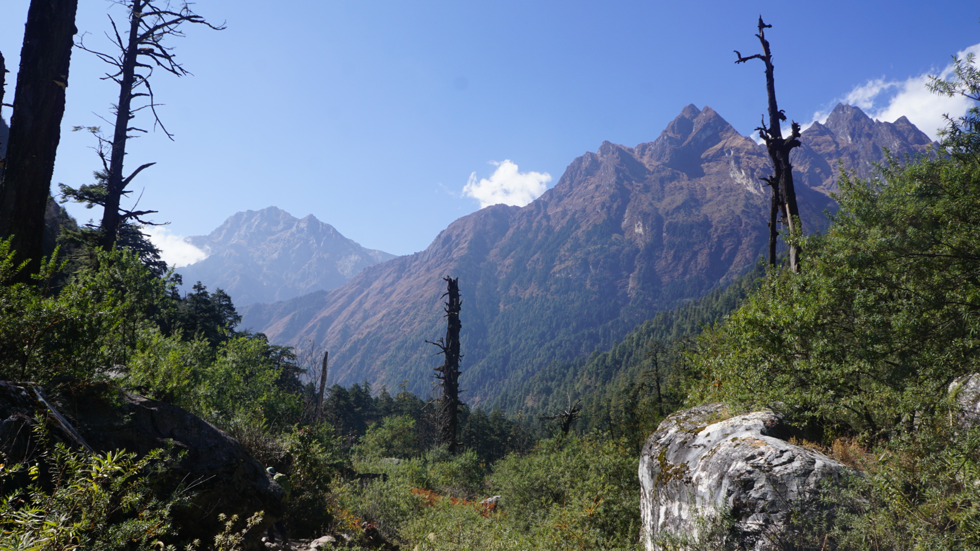 빔탕 마을을 둘러싸고 있는 히말라야 산자락들