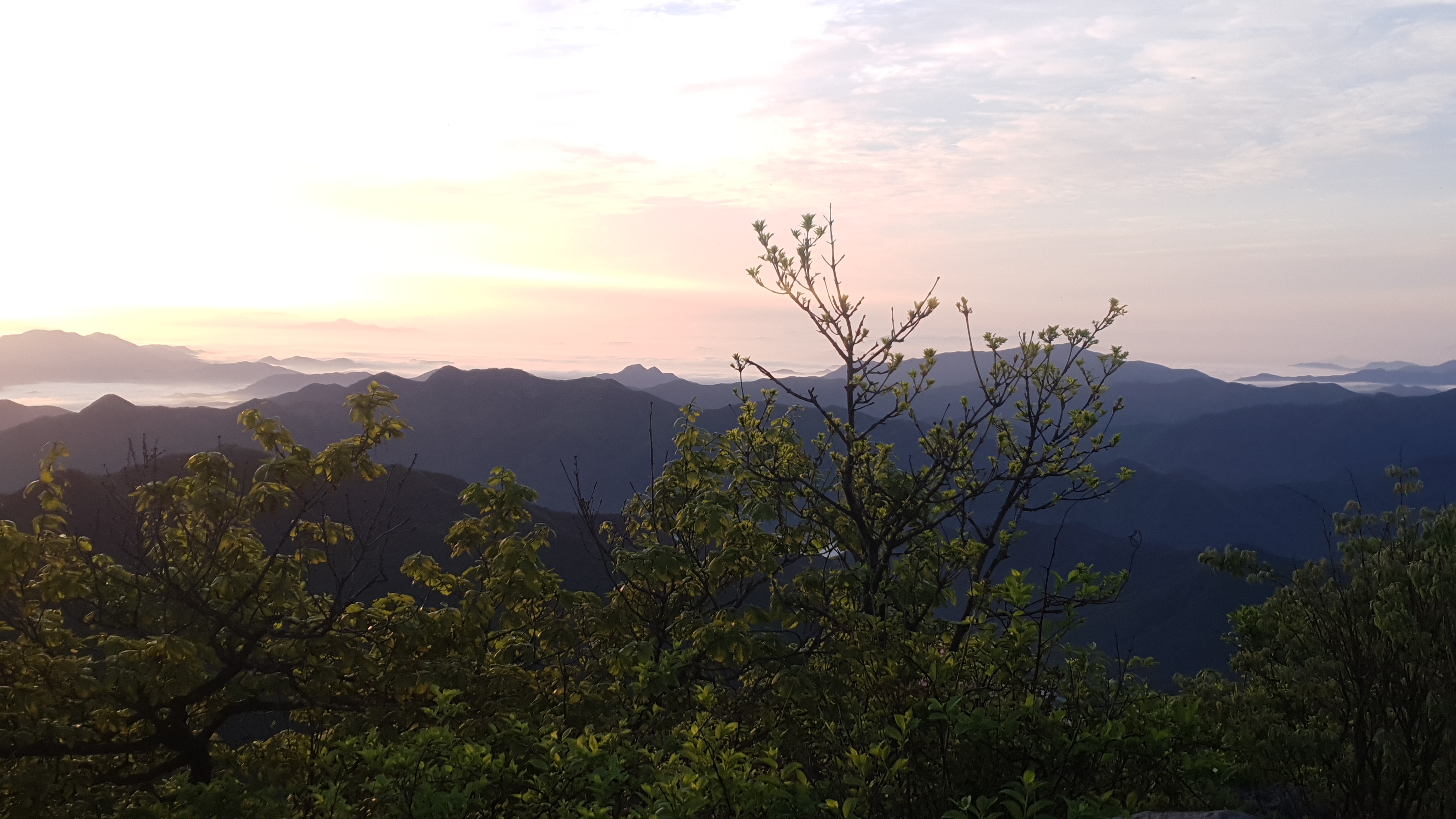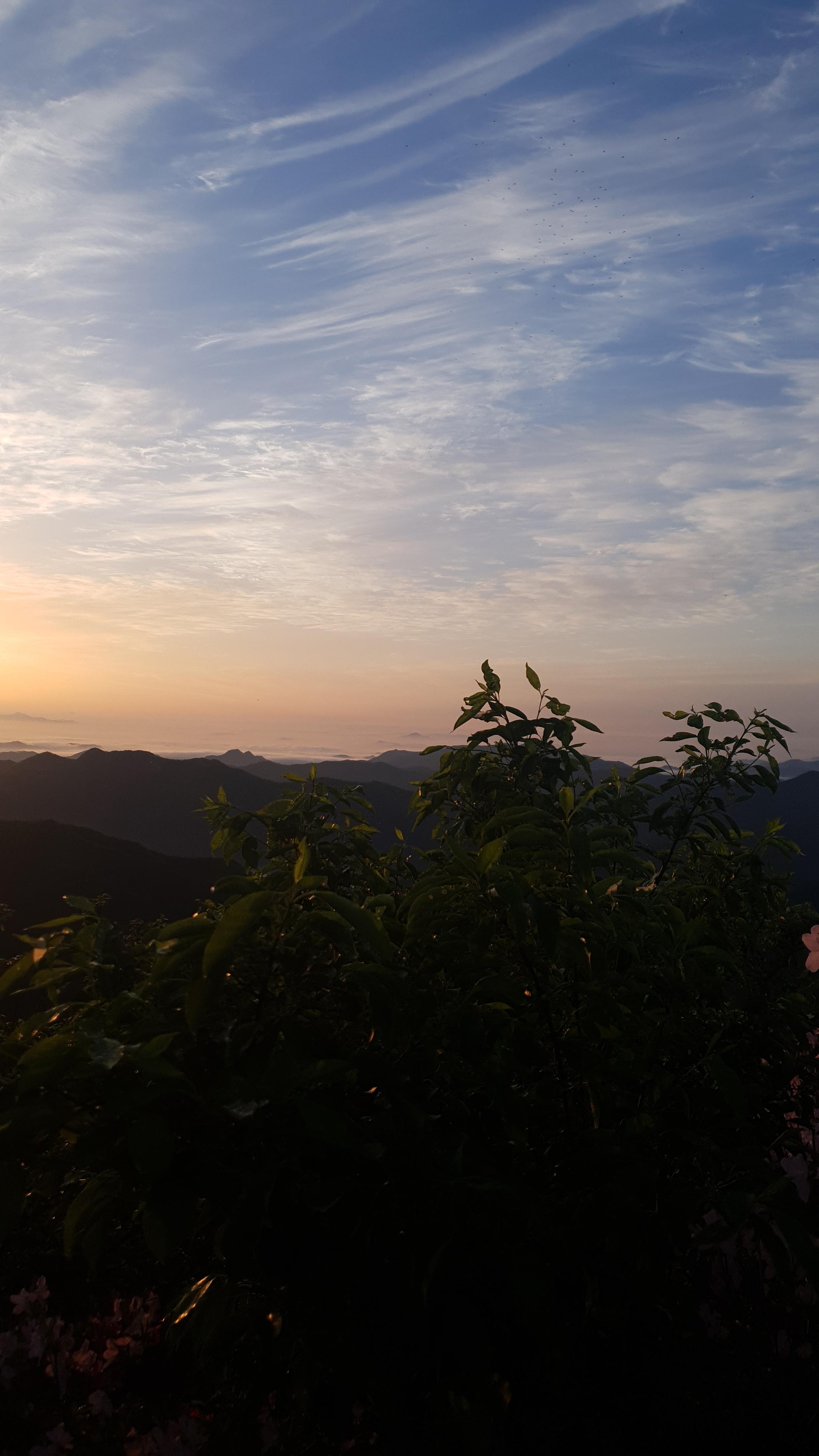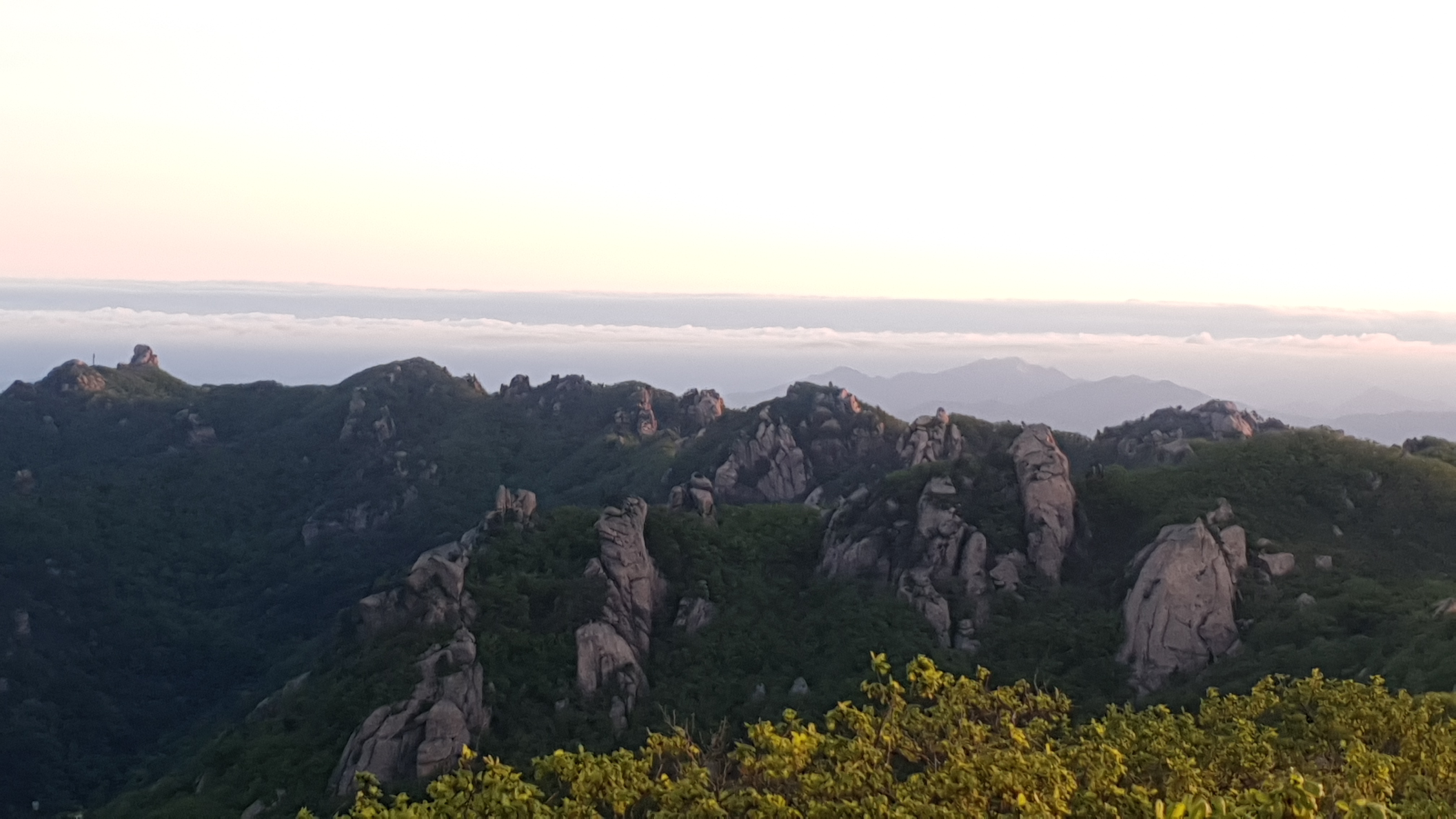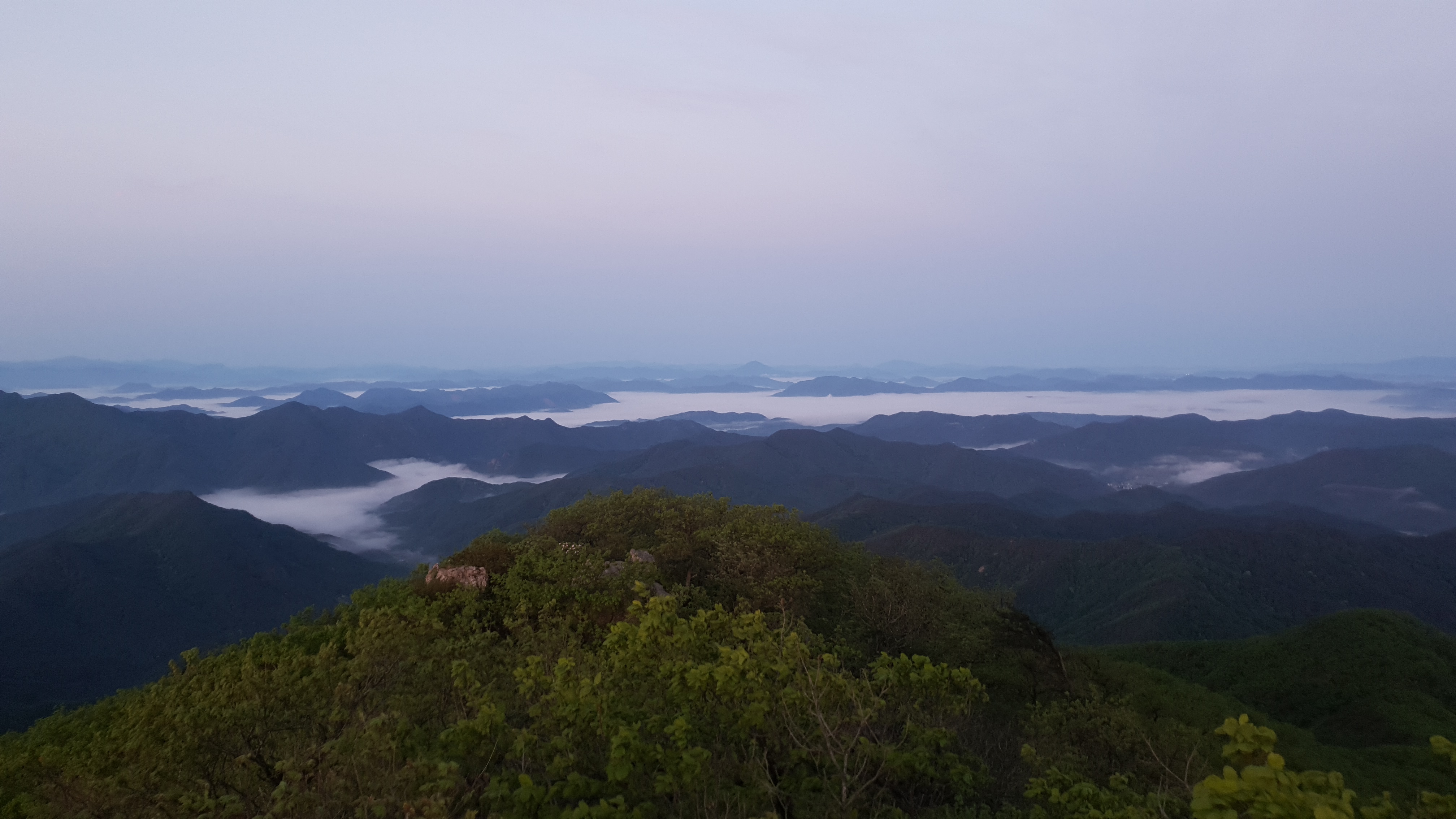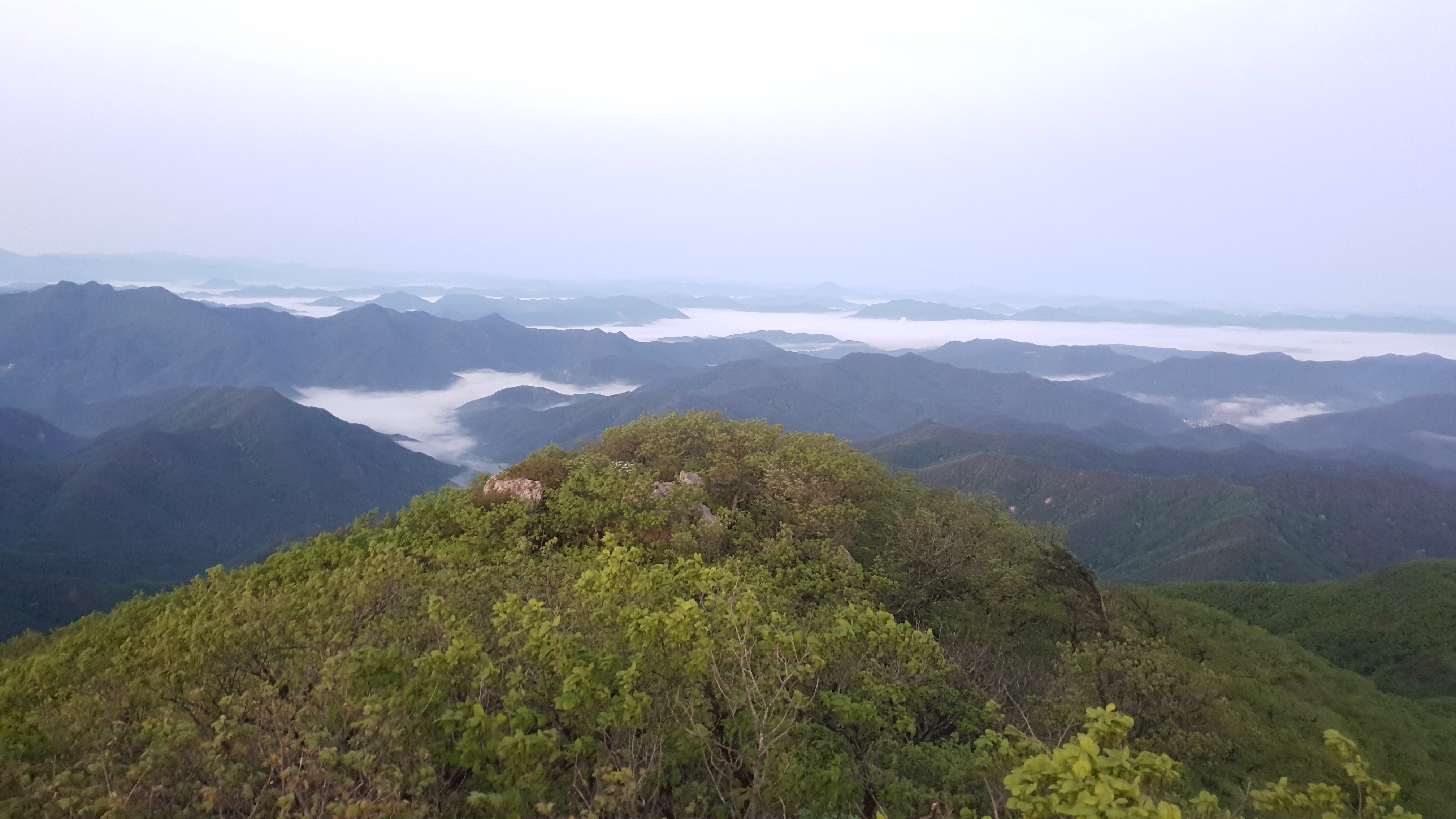 눈을 뜨고 시간을 보니 04시 45분 이다. 해 뜨는 시간이 05시 15분 라고 하니 일어나 준비하고 텐트 밖으로 나오자 붉은빛이 감돈다. 정상으로 사브작 사브작 올라가자 골짜구 골짜구 마다 와 허연물이 한 그득하다 ㅎㅎ 지금 바다에 온겨??