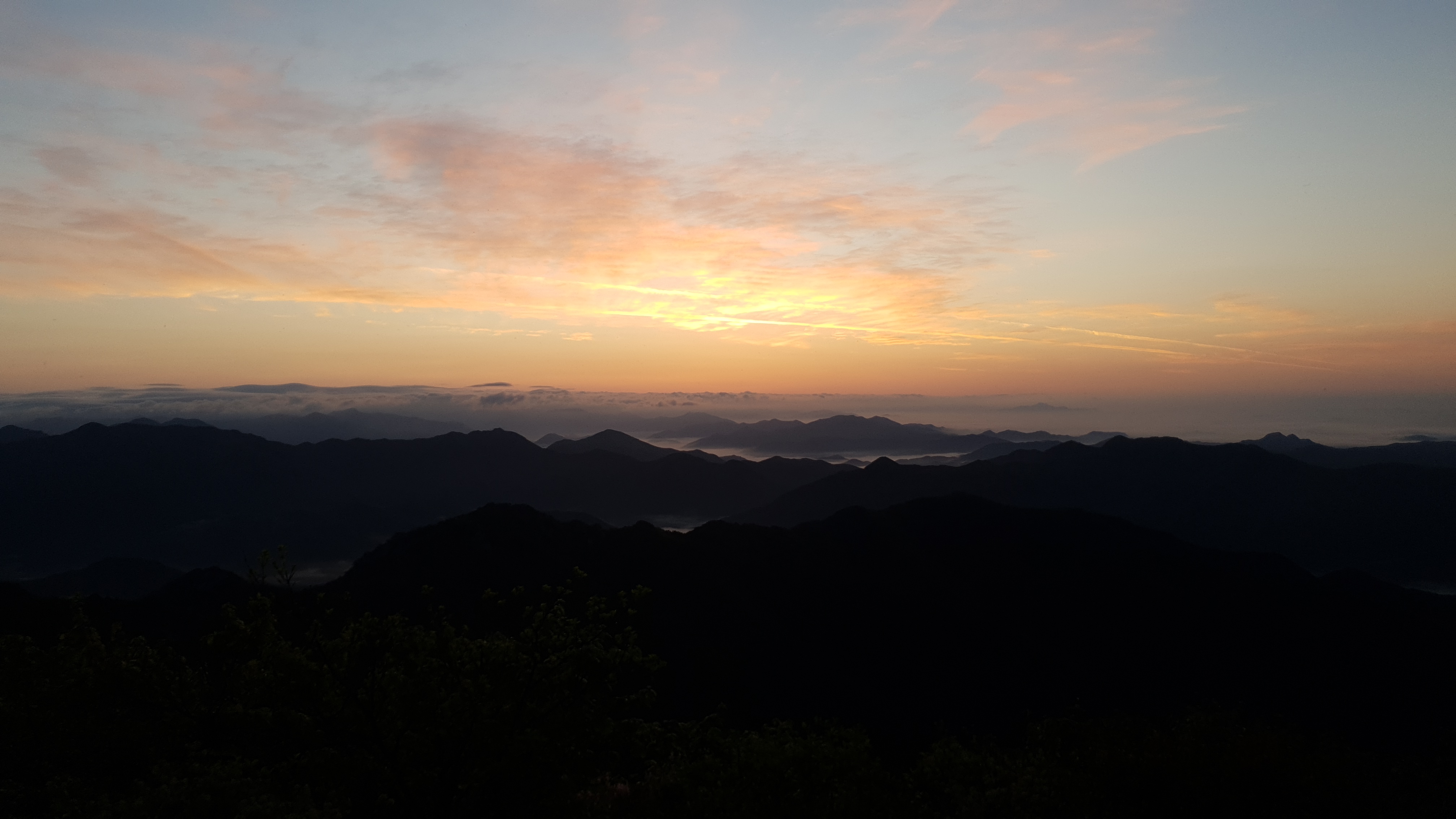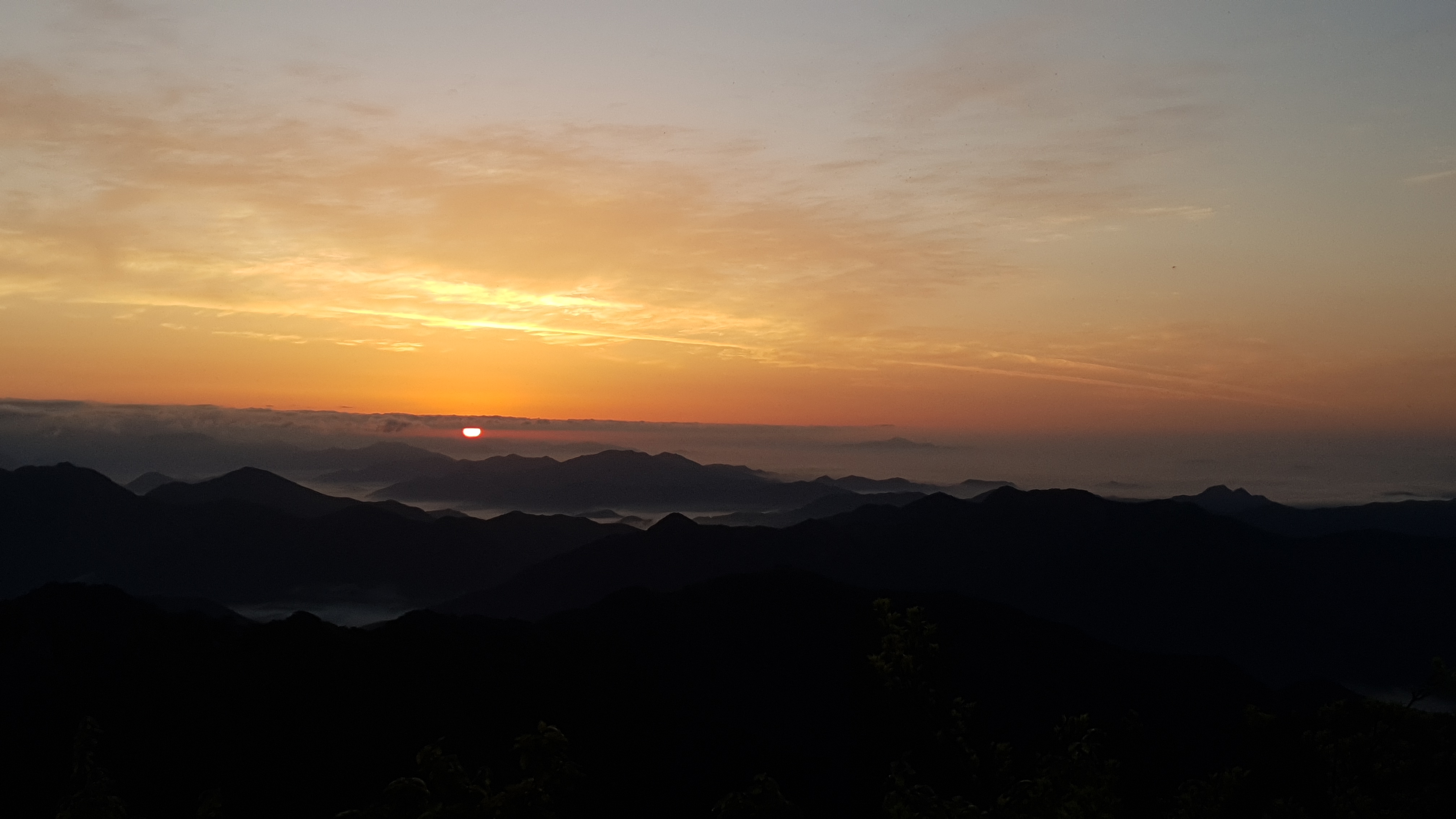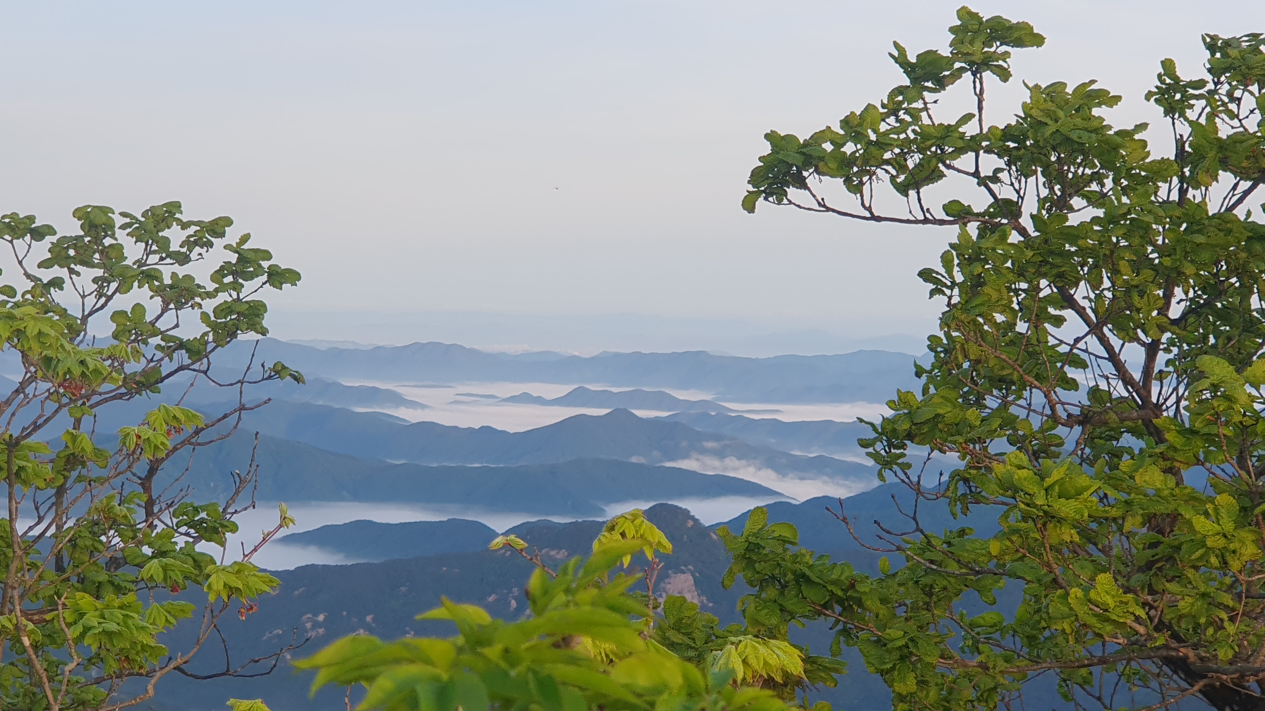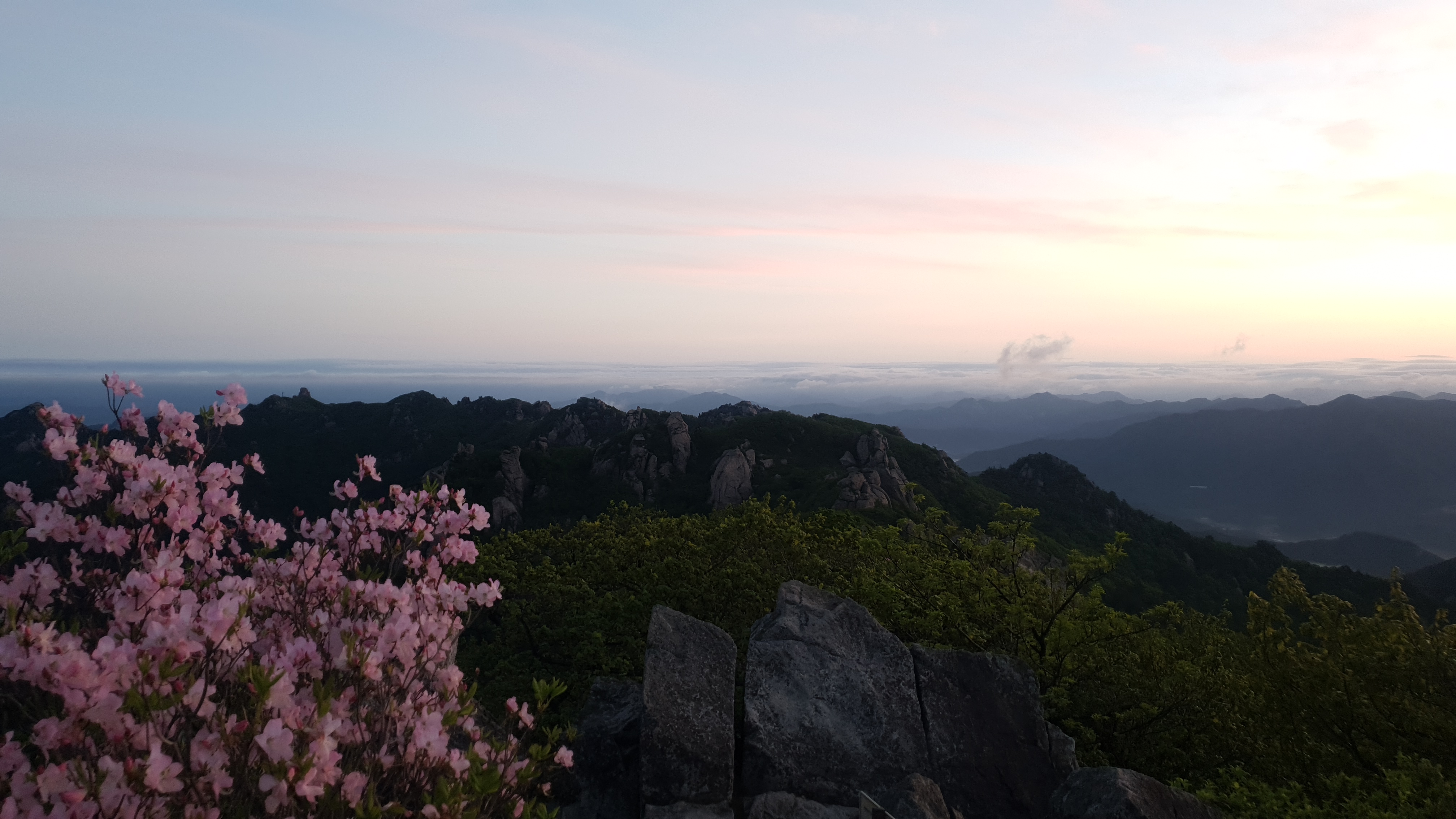 눈을 뜨고 시간을 보니 04시 45분 이다. 해 뜨는 시간이 05시 15분 라고 하니 일어나 준비하고 텐트 밖으로 나오자 붉은빛이 감돈다. 정상으로 사브작 사브작 올라가자 골짜구 골짜구 마다 와 허연물이 한 그득하다 ㅎㅎ 지금 바다에 온겨??